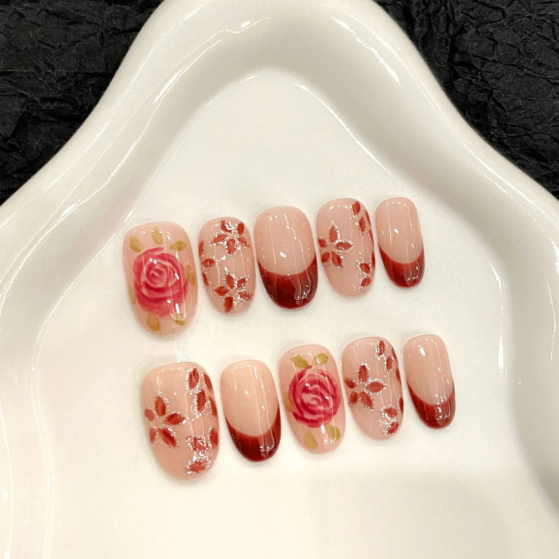 10 Spring Flower French Nails | Fake Nail Tips Women Wearable Full Cover