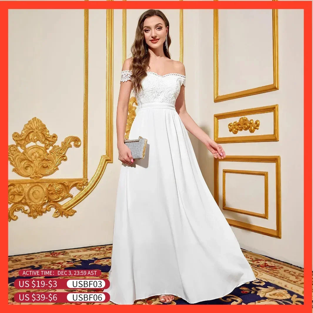 Simple Backless Wedding Dress | Evening Dresses Luxury V Neck Bridesmaid Dresses Off The Shoulder Prom Dress