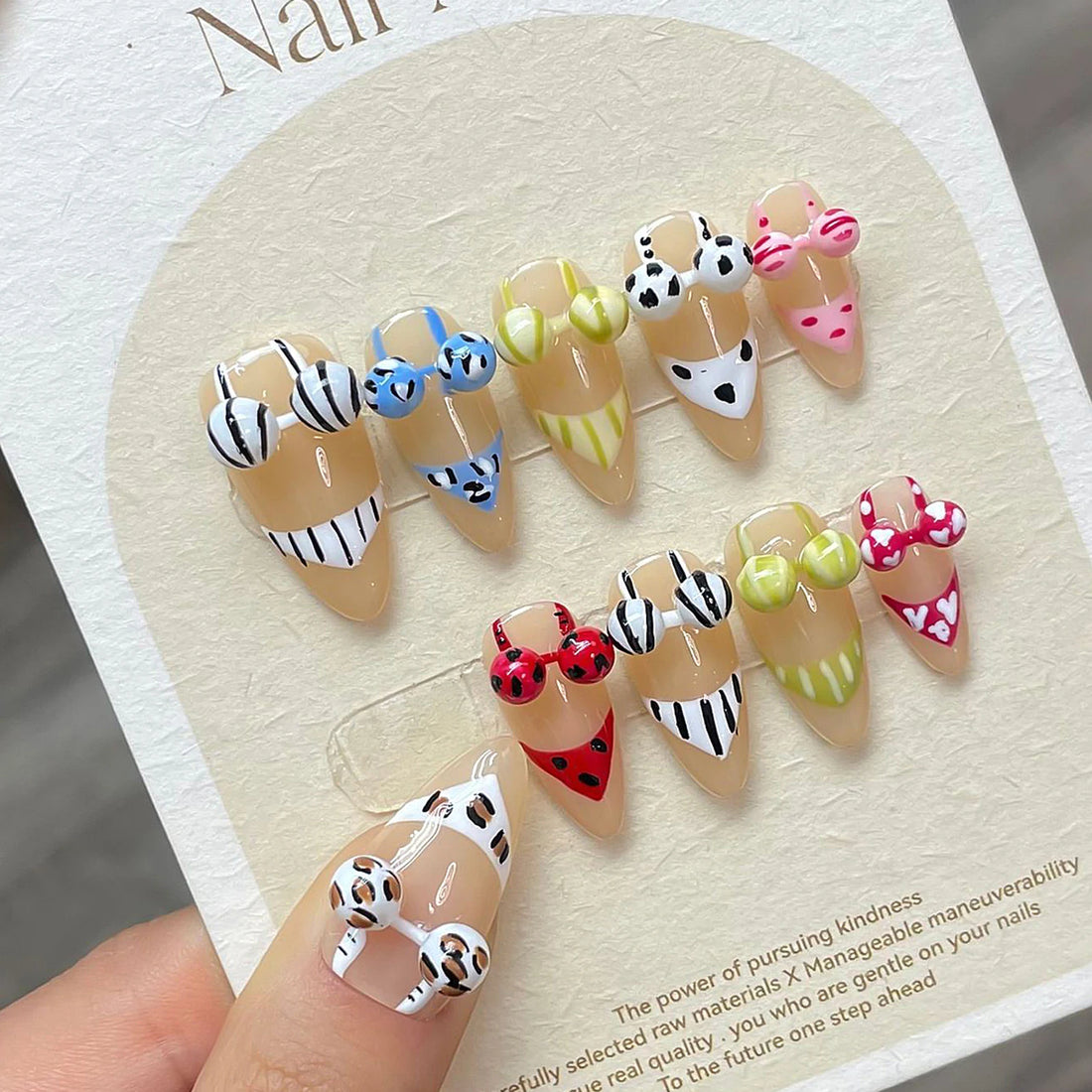 Bikini Nails | Handmade Press on Nails with 3D Bikini Design | Summer Beach Style False Nails