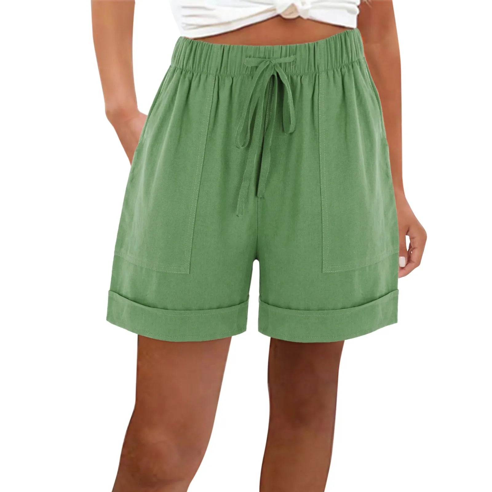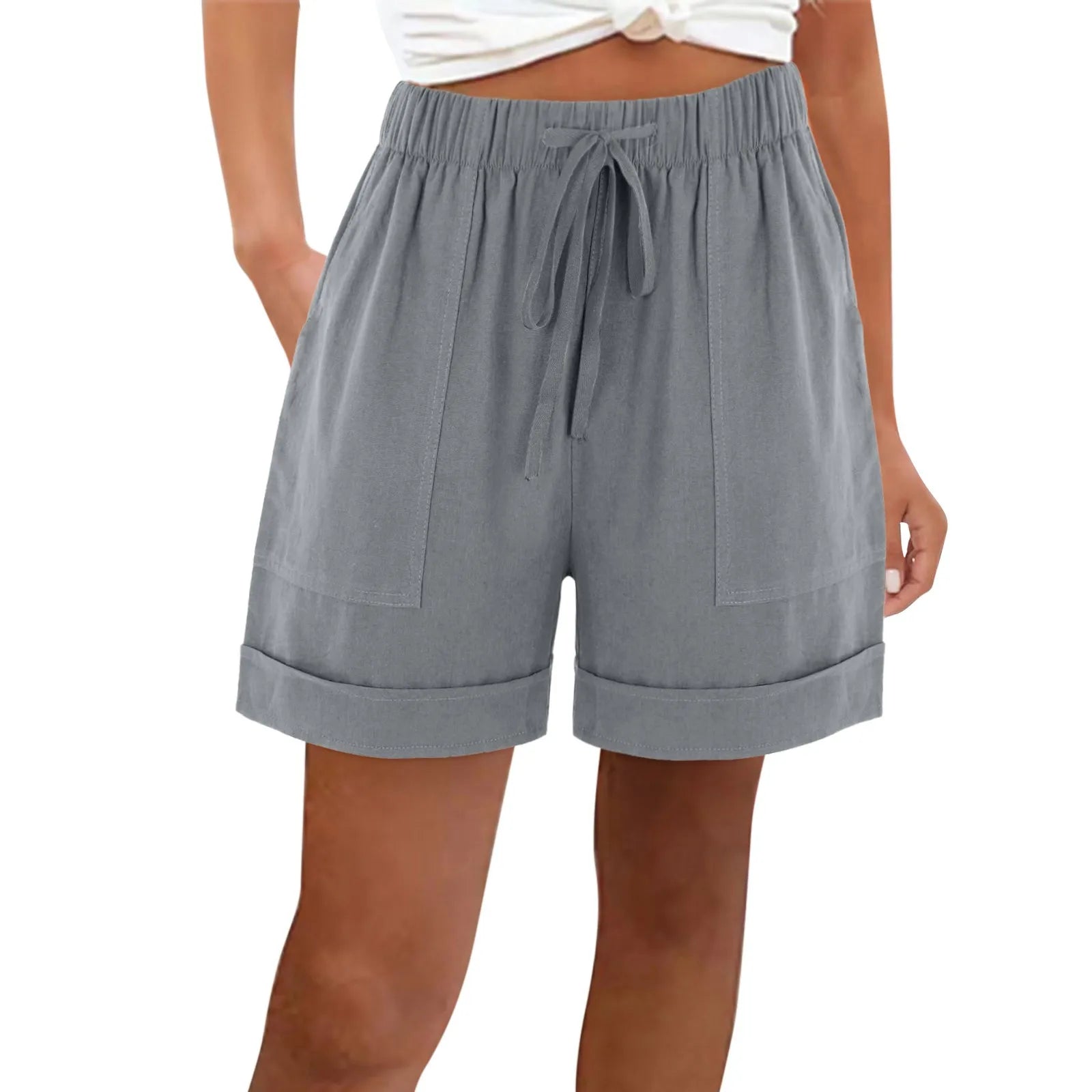 Women's Casual High Waist Beach Shorts with Drawstring