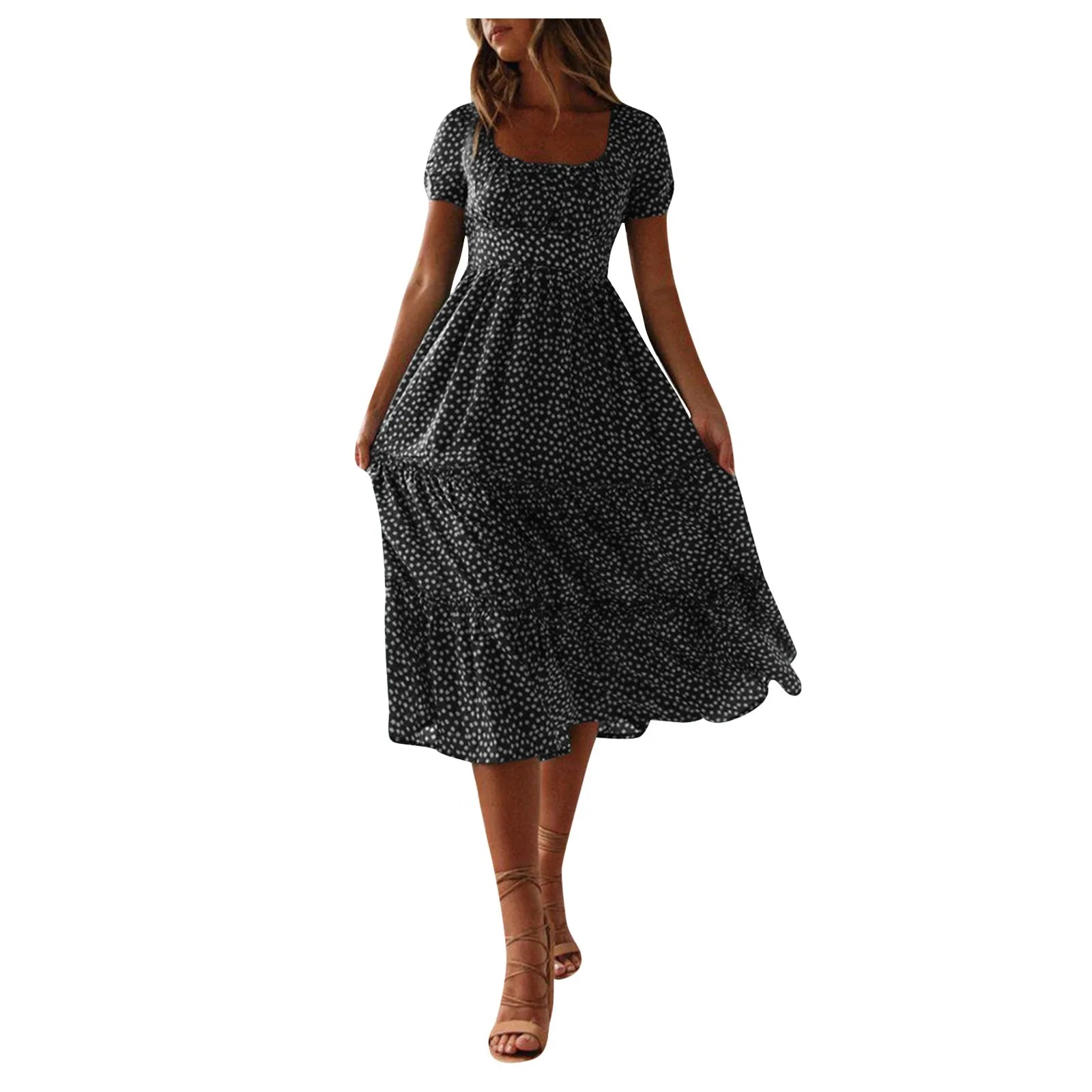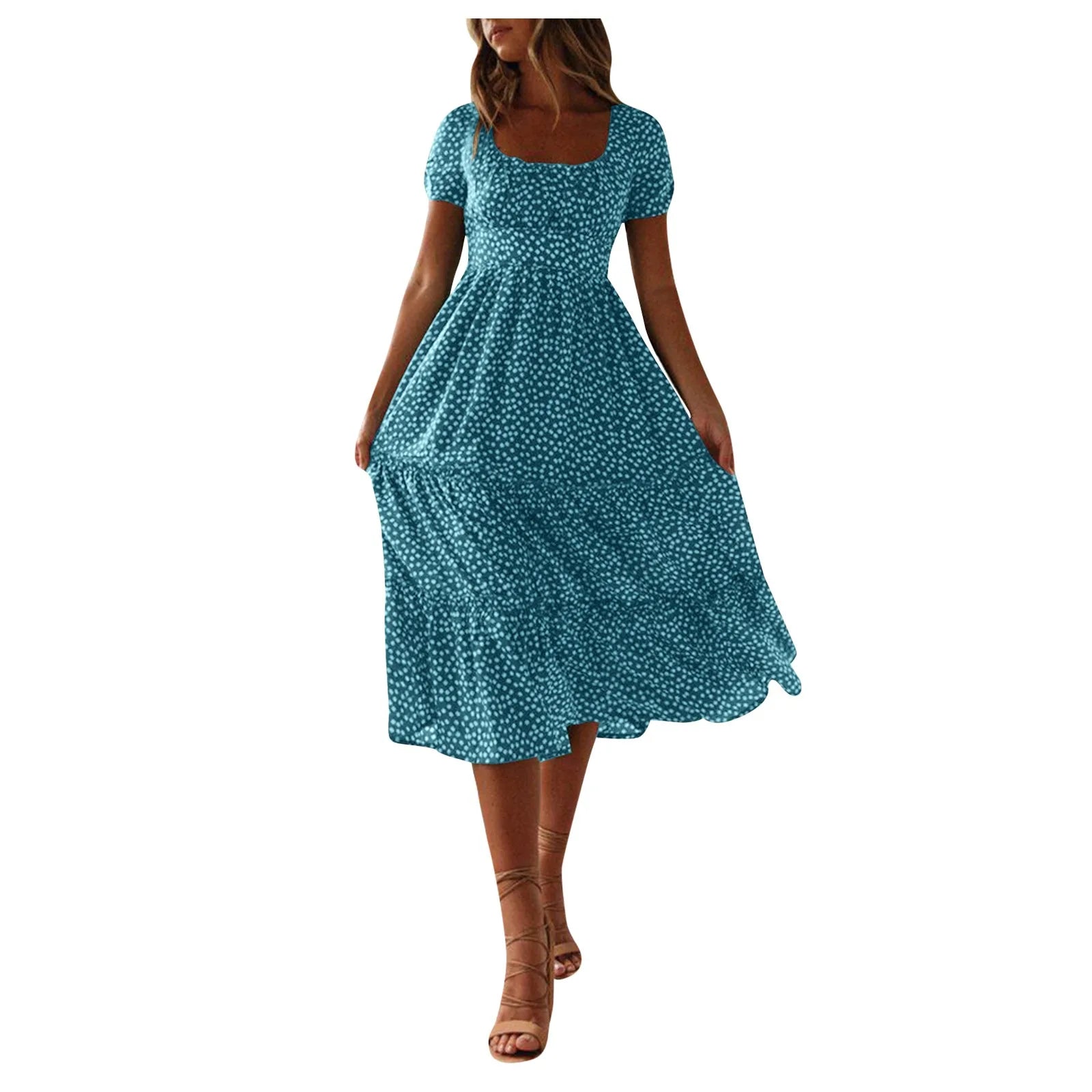 • FEATURES Womens Dresses Summer Dresses For Women Beach Dresses For Women Square Neck With Elastic Trim Short Sleeves With Elastic Cuff Self Tie Back Backless Elastic High Waist Smocked Back Waist Floral Print Swing Ruffle Hem And A Line Shape Above Knee Length