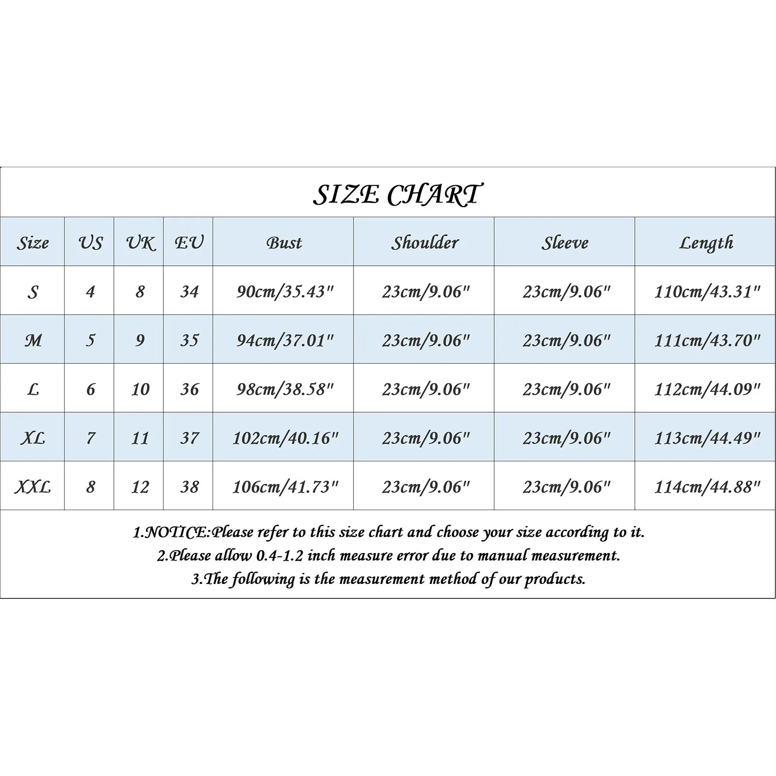 Size:XXL US:8 UK:12 EU:38 Bust:106cm/41.73'' Shoulder:23cm/9.06'' Sleeve:23cm/9.06'' Length:114cm/44.88''