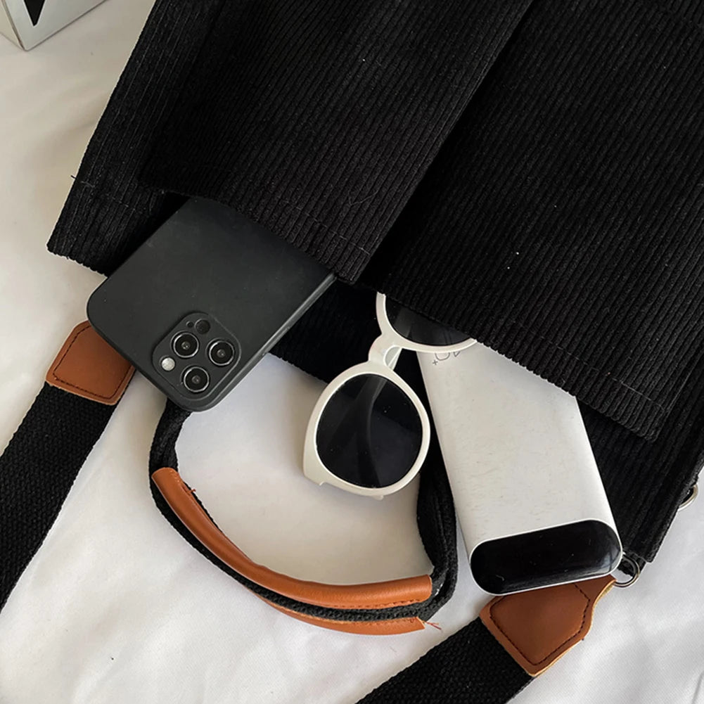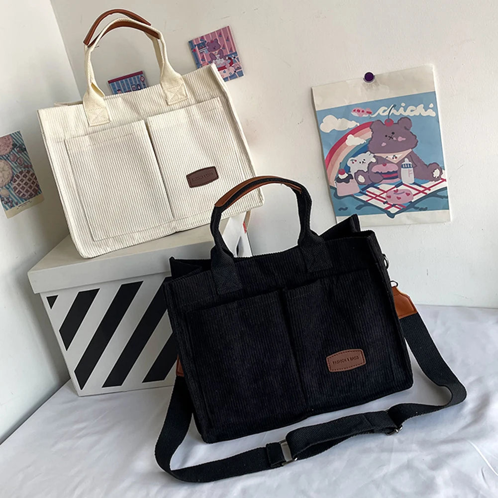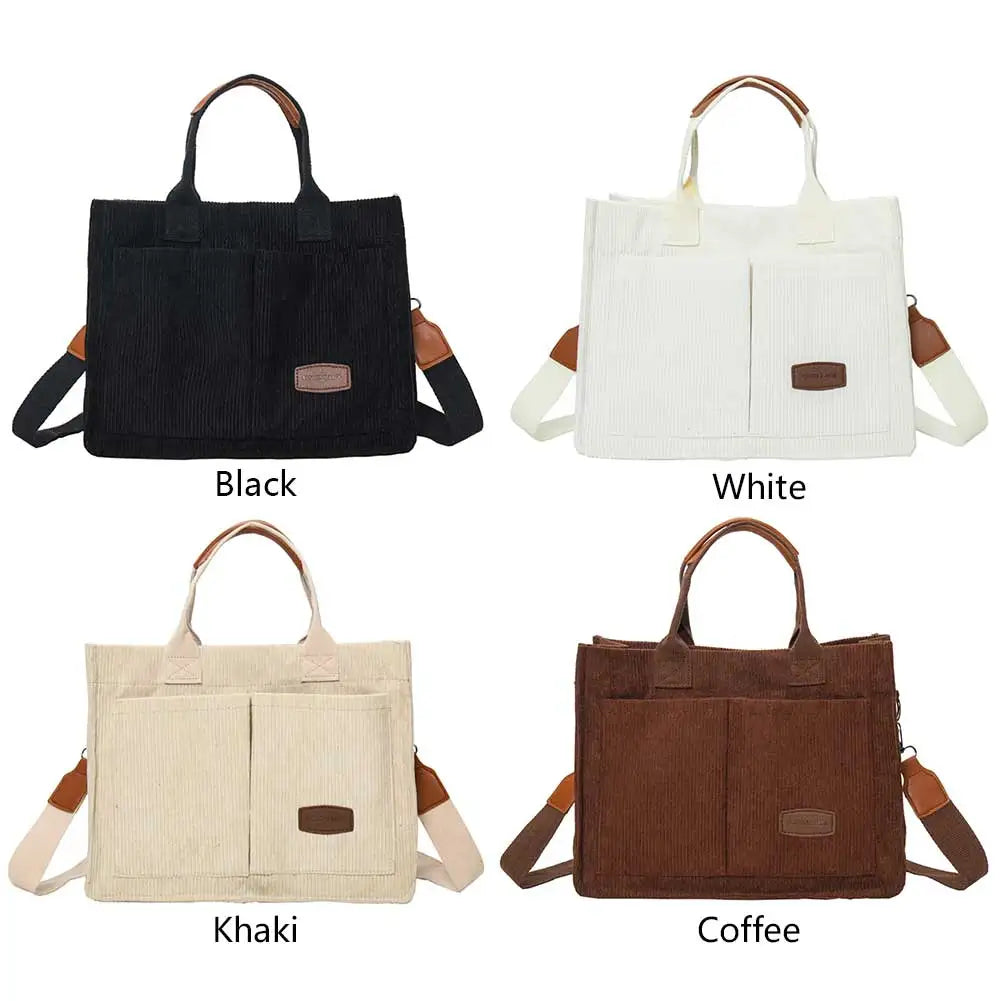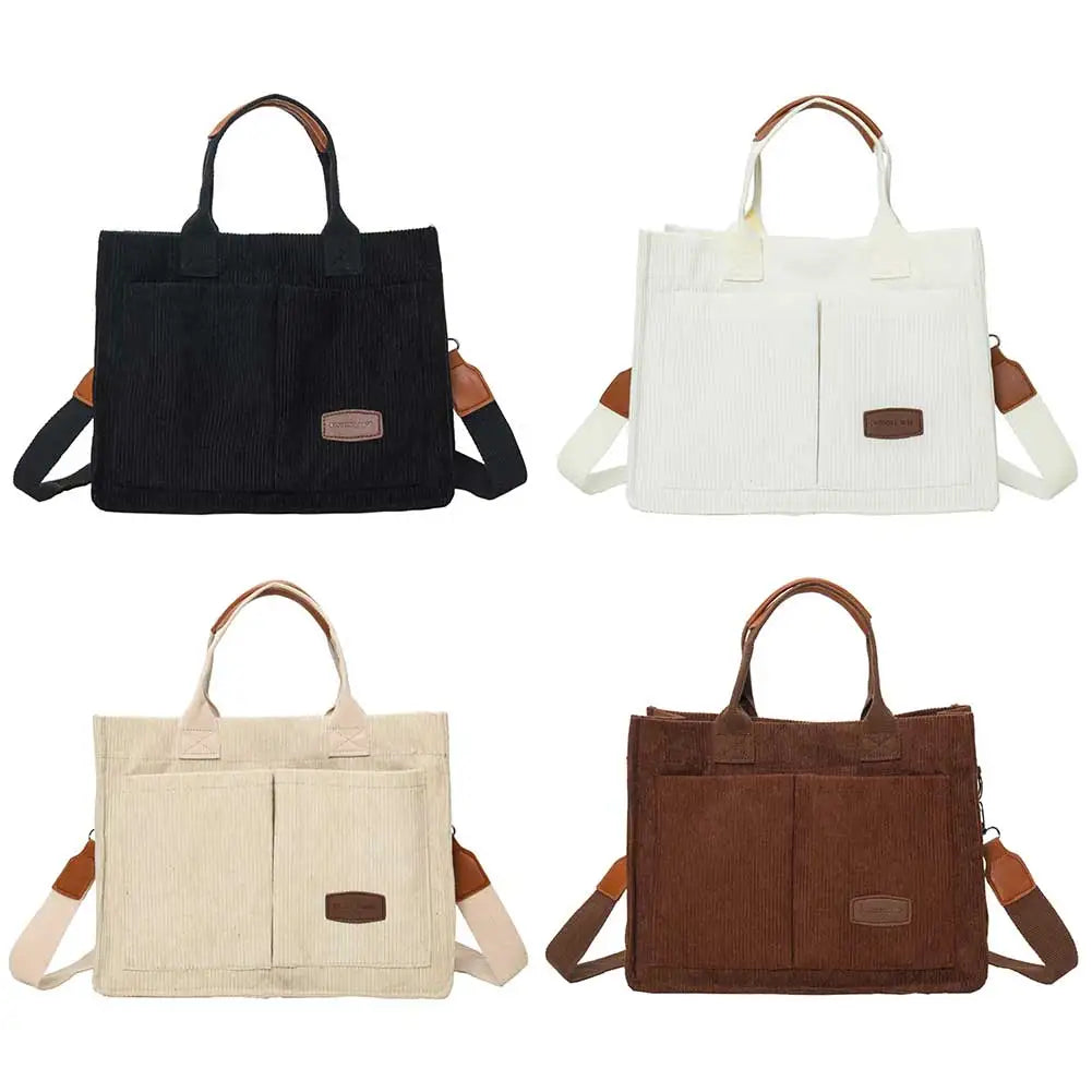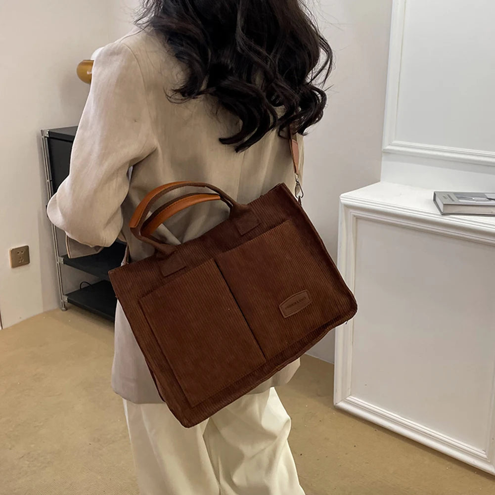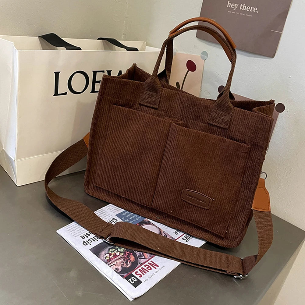 Corduroy Tote Bag Crossbody Bag Large Capacity Women Fashion Handbag with Multiple Pockets Top Handle Crossbody Bag Everyday Bag
