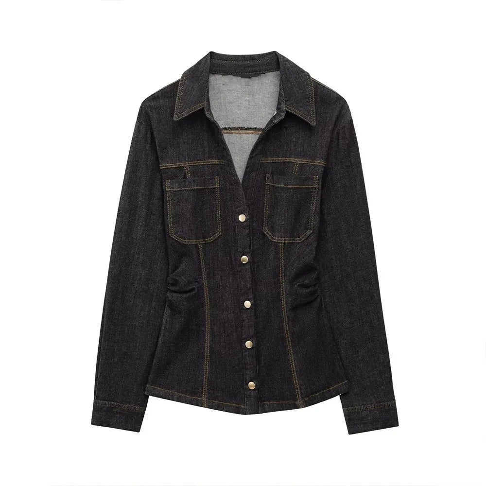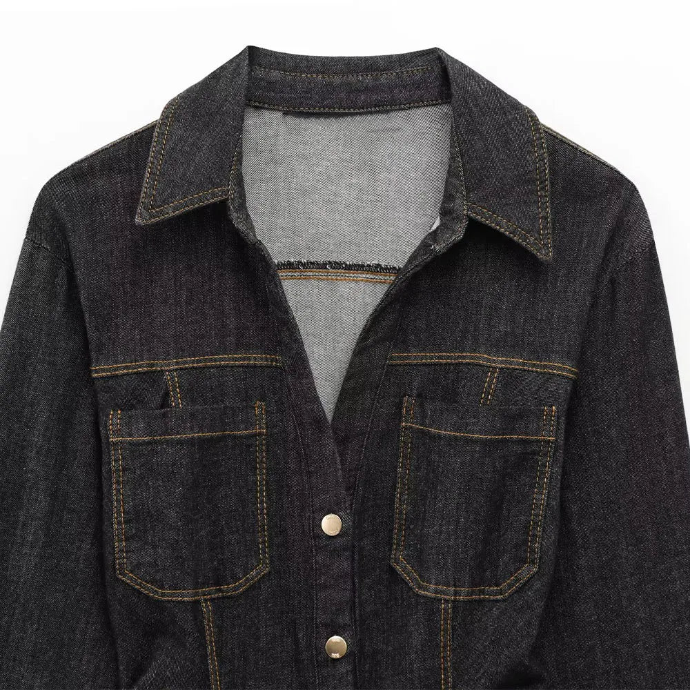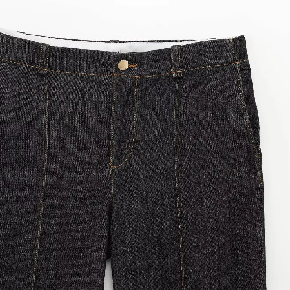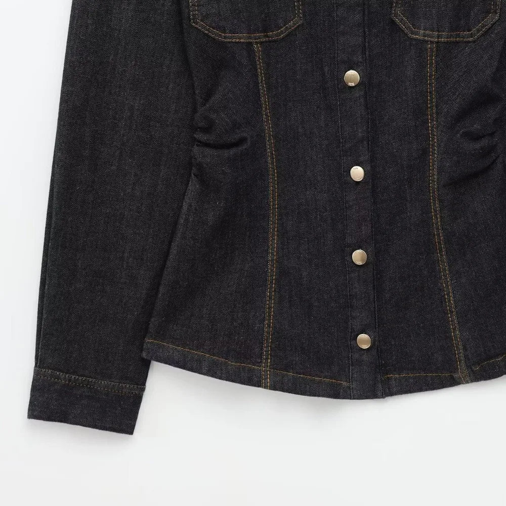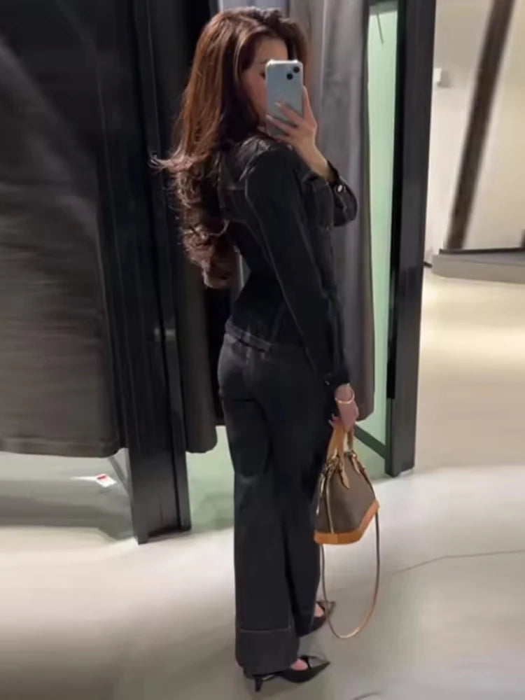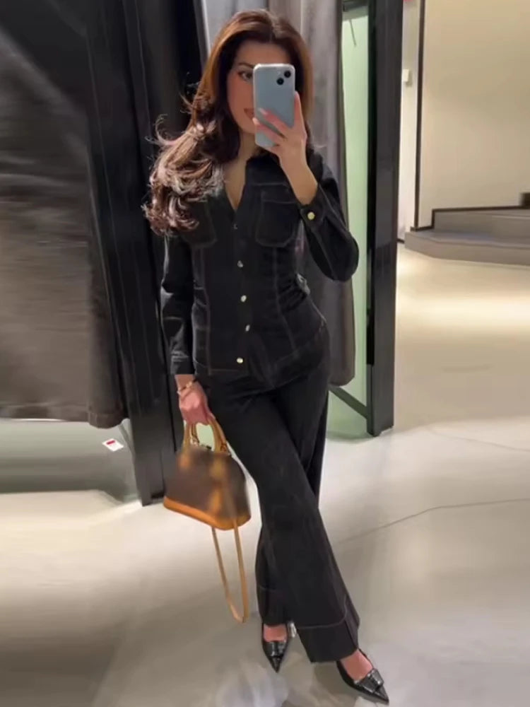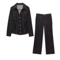 Denim Set For Women | Single Breasted Pocket Coat High-waist Button Zip Trousers