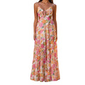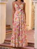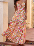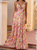 Elegant Maxi Dress with V-Neckline and Ruffle Detailing Boho Chic Sleeveless Floral Print Summer Dress for Women