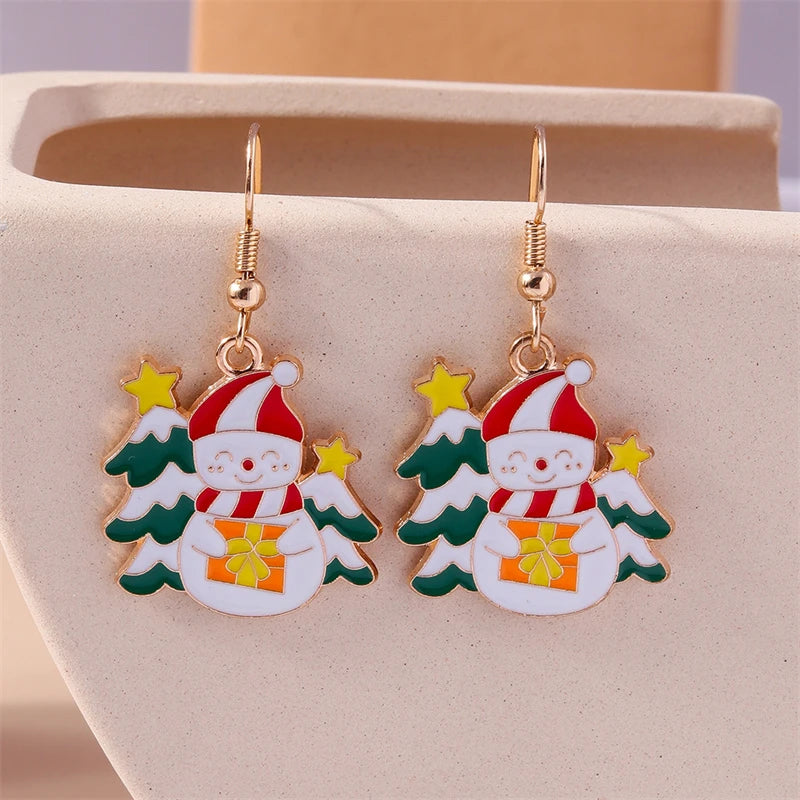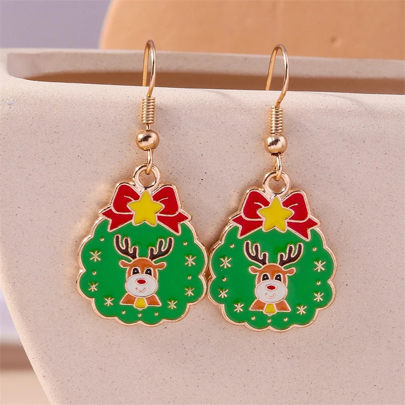 Fashion Merry Christmas Wreath Circle Hoop Earrings for Women Girls New Year Party Festival Jewelry Gifts