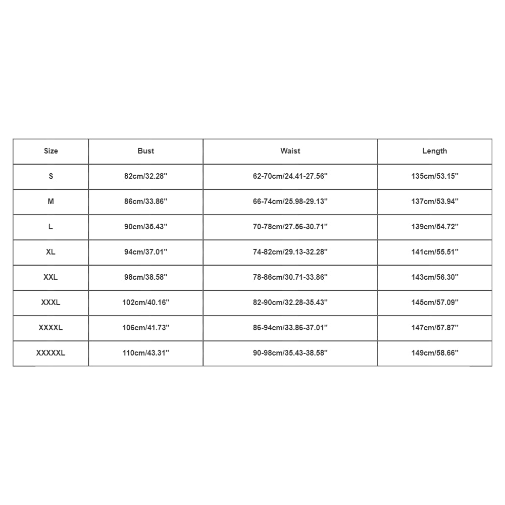 Size:XXXL Bust:102cm/40.16'' Waist:82-90cm/32.28-35.43'' Length:145cm/57.09''