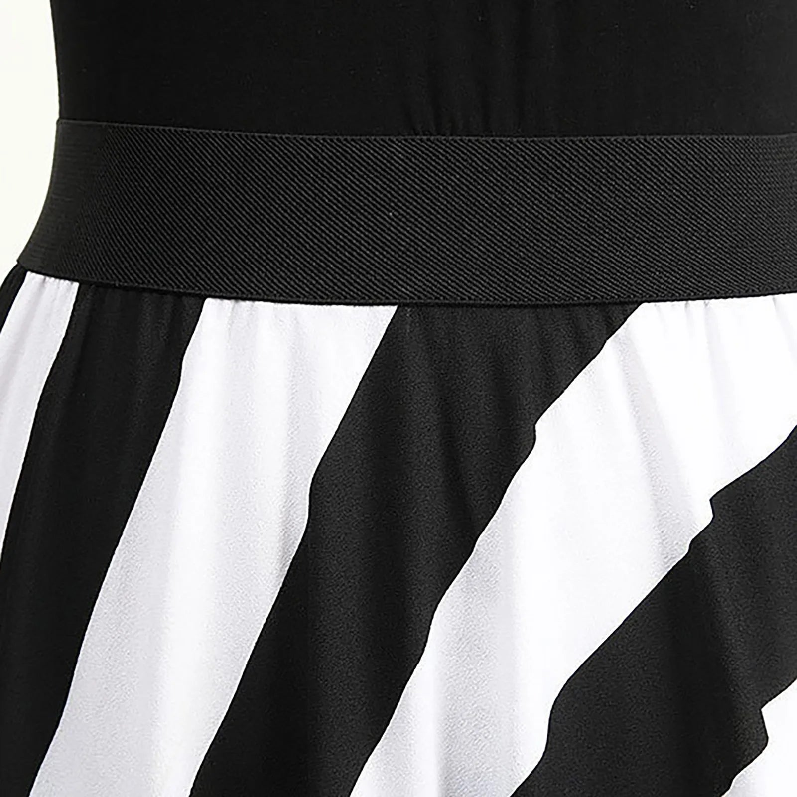 Women's Casual Summer Sleeveless Mini Striped Pleated Dress