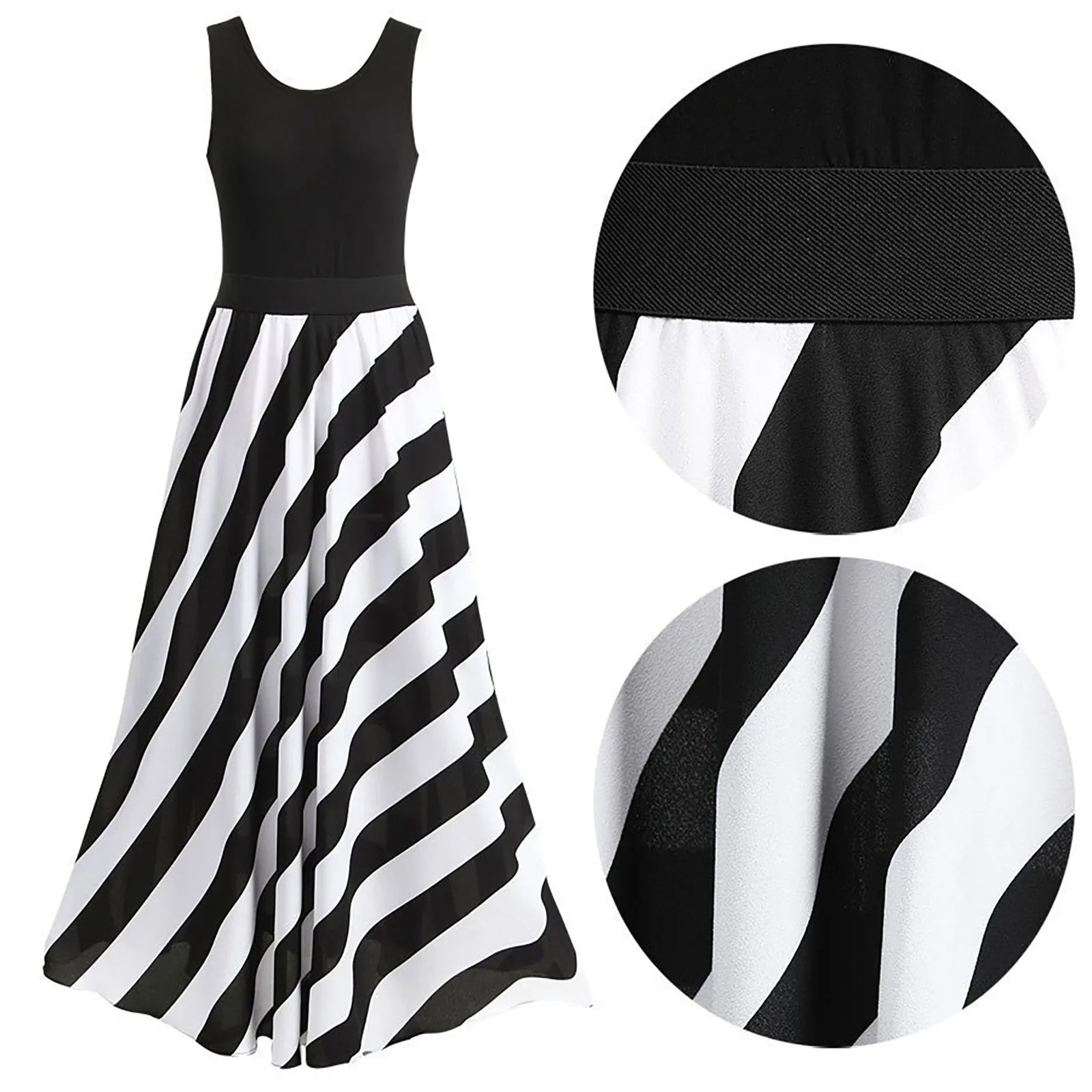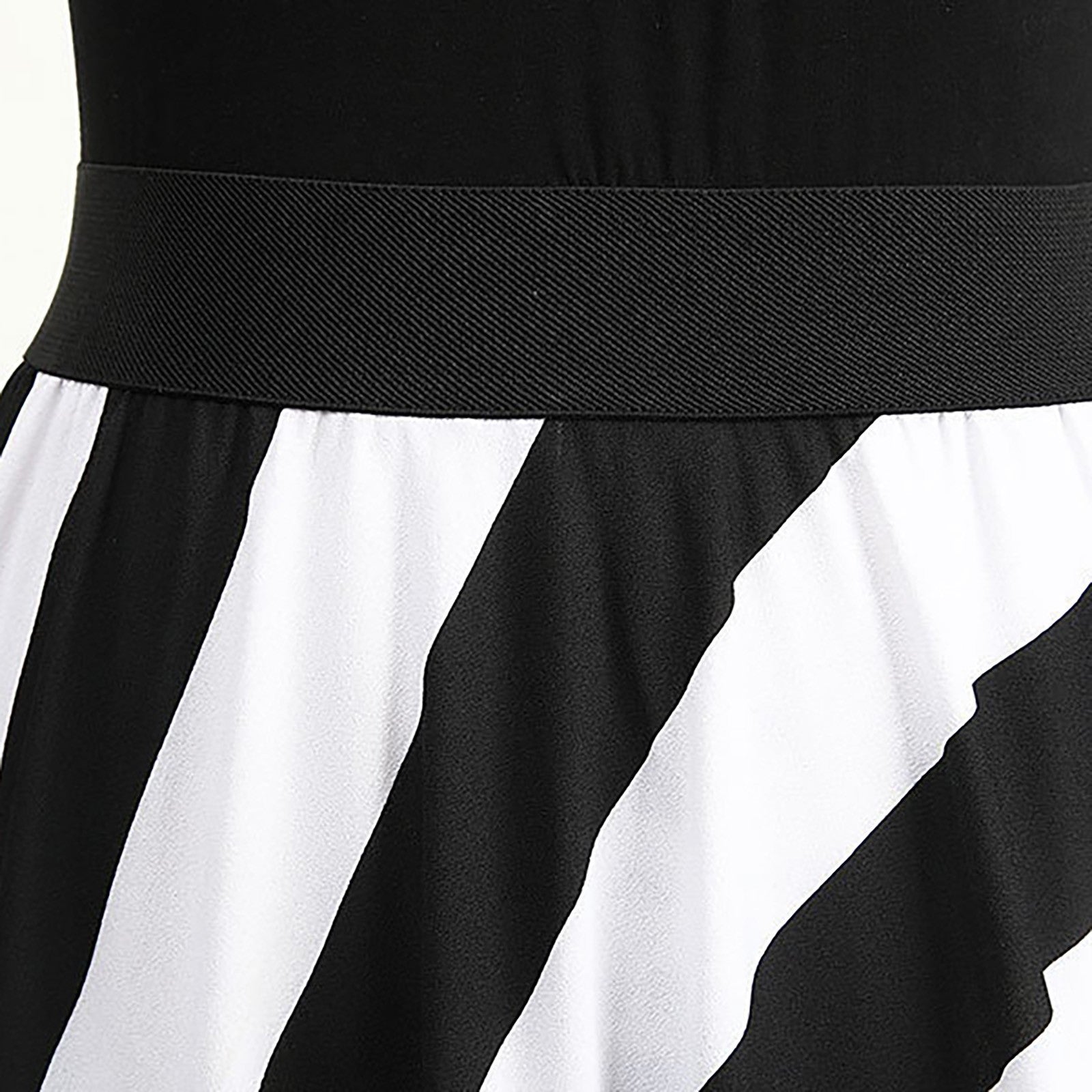 Mini Striped Pleated Dress For Summer Womens Dresses Sleeveless Chiffon Elegant Slimming Waist Backless Long Dresses Vestidos