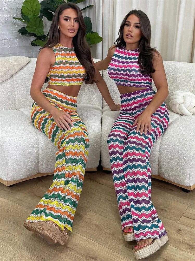 2 piece dress for women | o-Neck Sleeveless Crop Tops+Straight Pants | Street Fashion