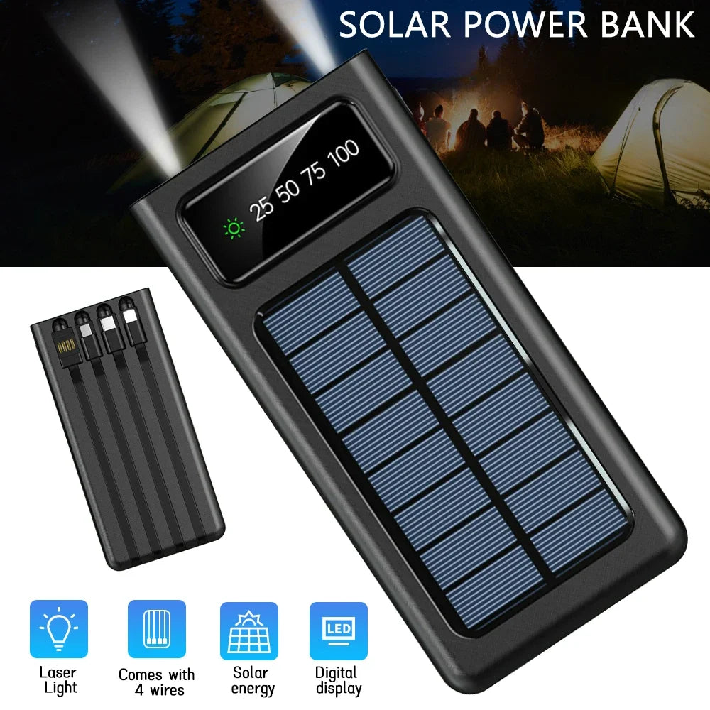 1 x Solar Powered Power Bank With Embedded 4 Cables