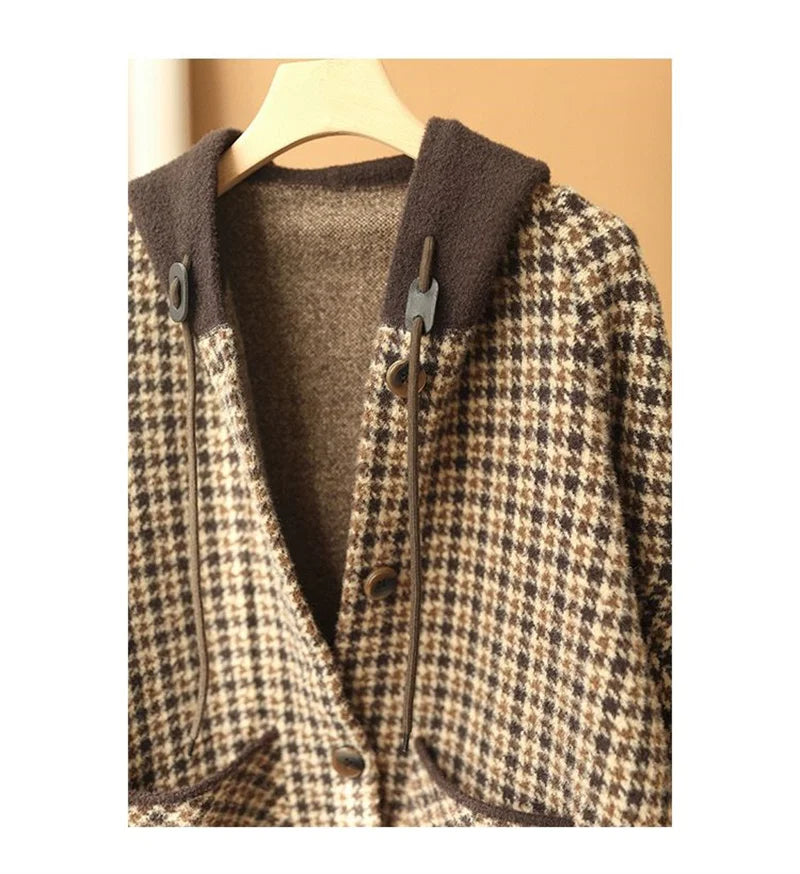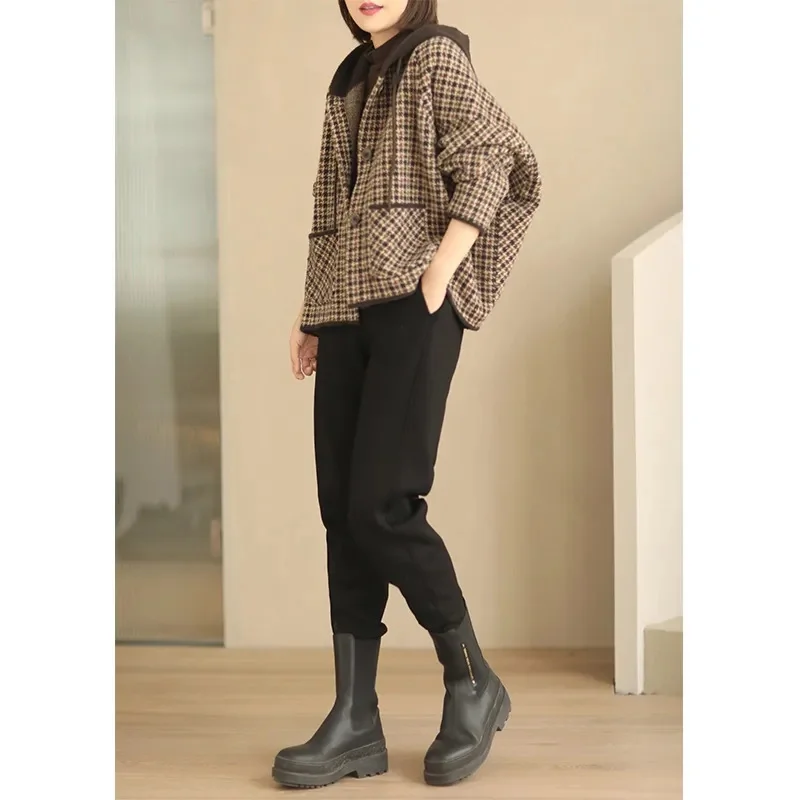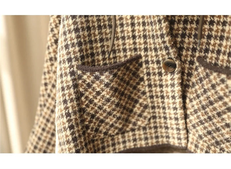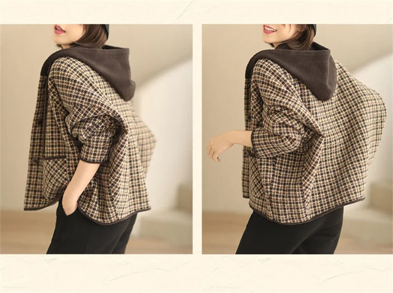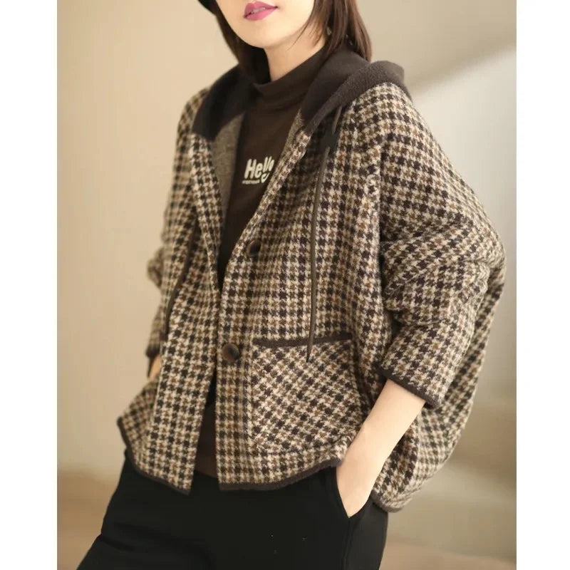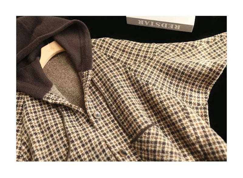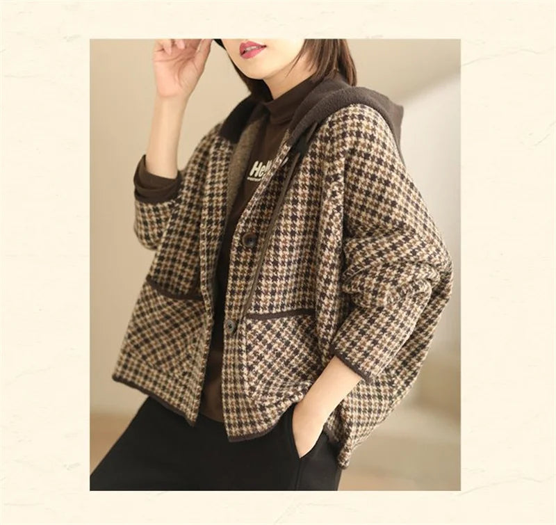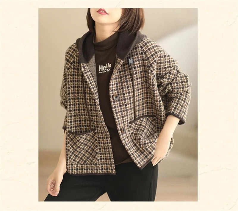 2025 New Womens Woolen Coats Autumn Winter Hooded Female Short Wool Jackets Retro Leisure Lady Loose Outerwear