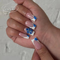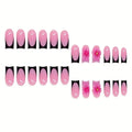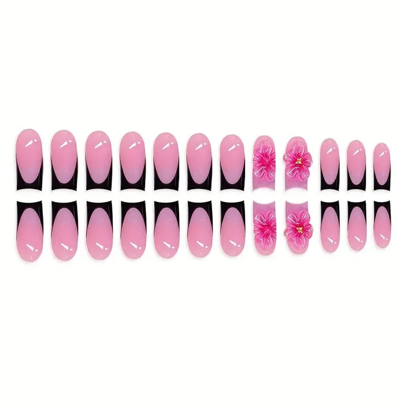 24 3d Flower Nails | French Style Press On Nails | Short Square European Wearable Nail