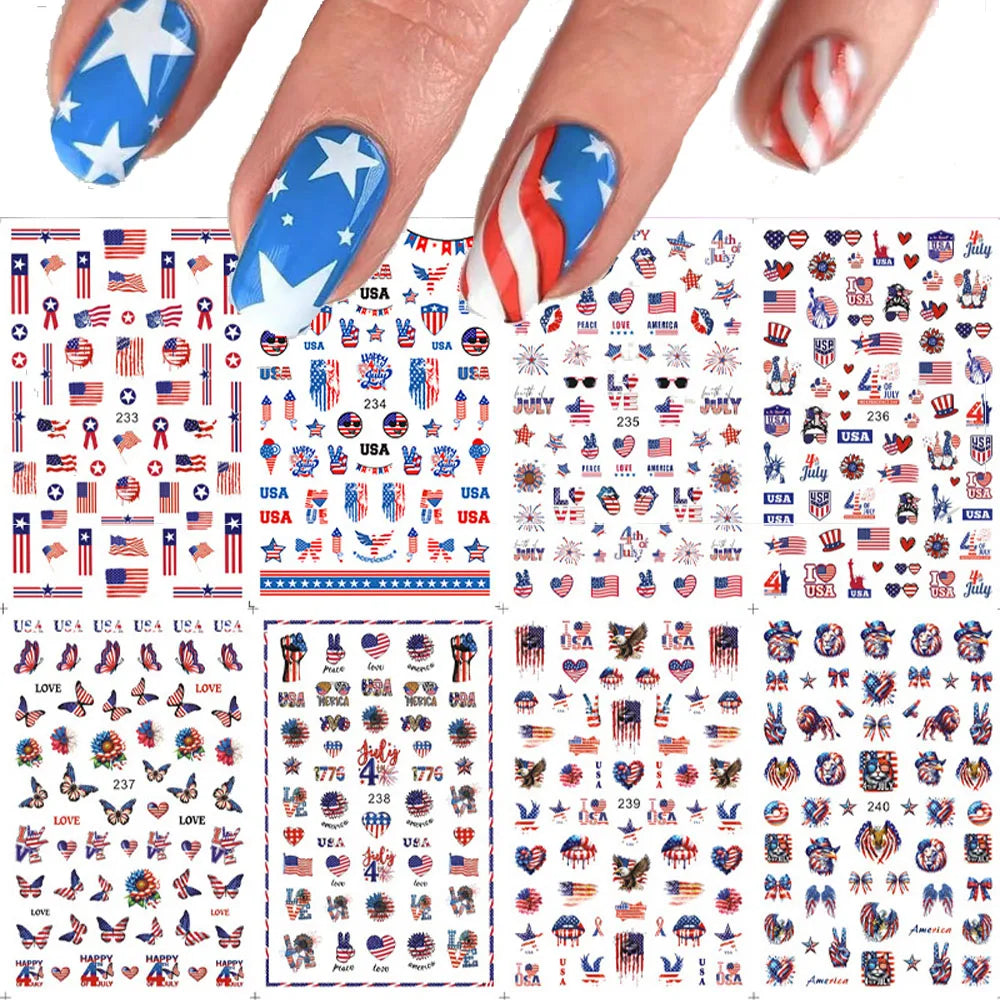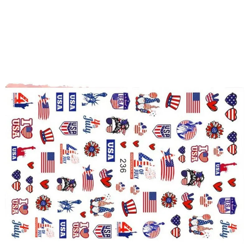 1Pcs 3D Independence Day USA Flags Design Nail Stickers Self-Adhesive America Flags Nail Decal DIY Manicure USA Flags Slider