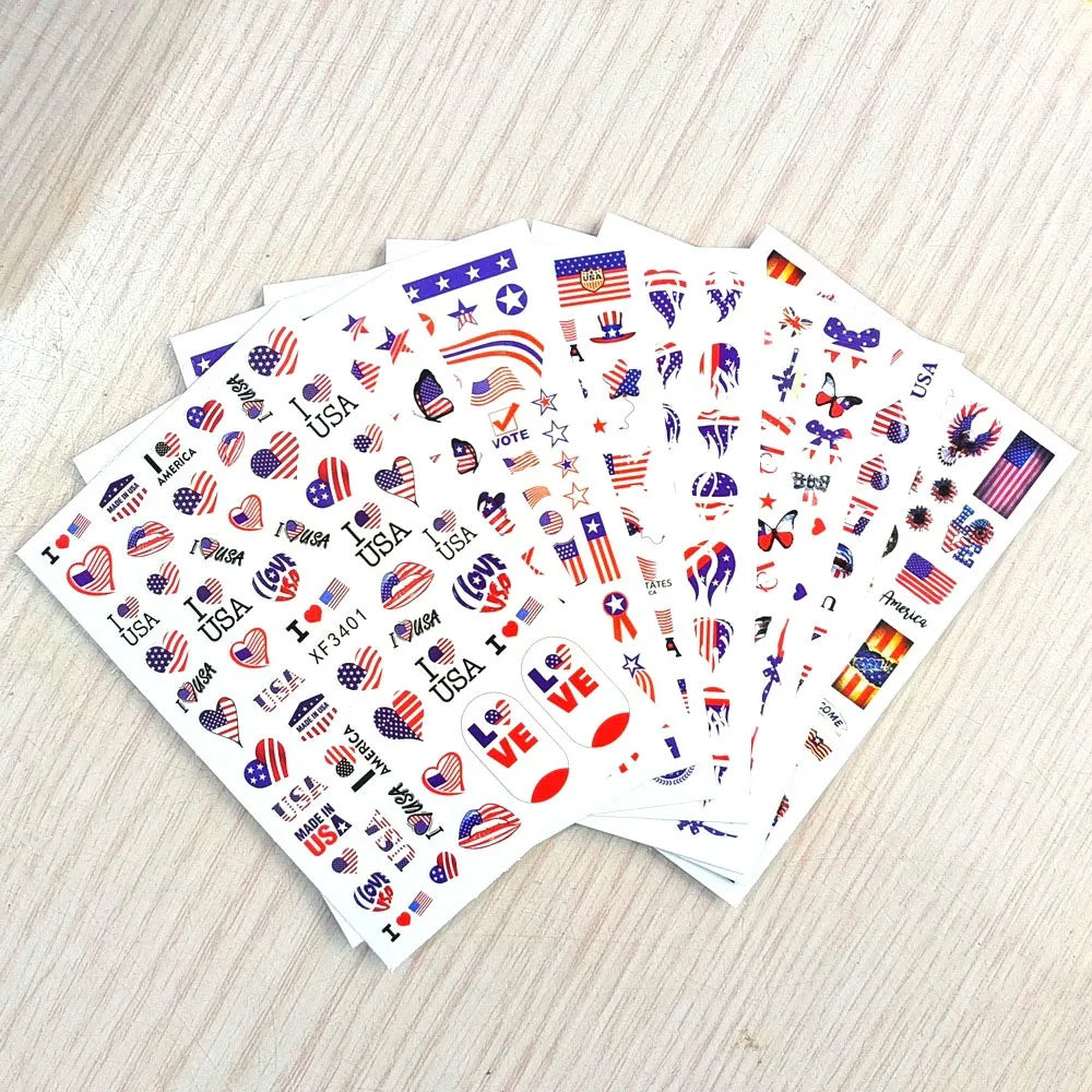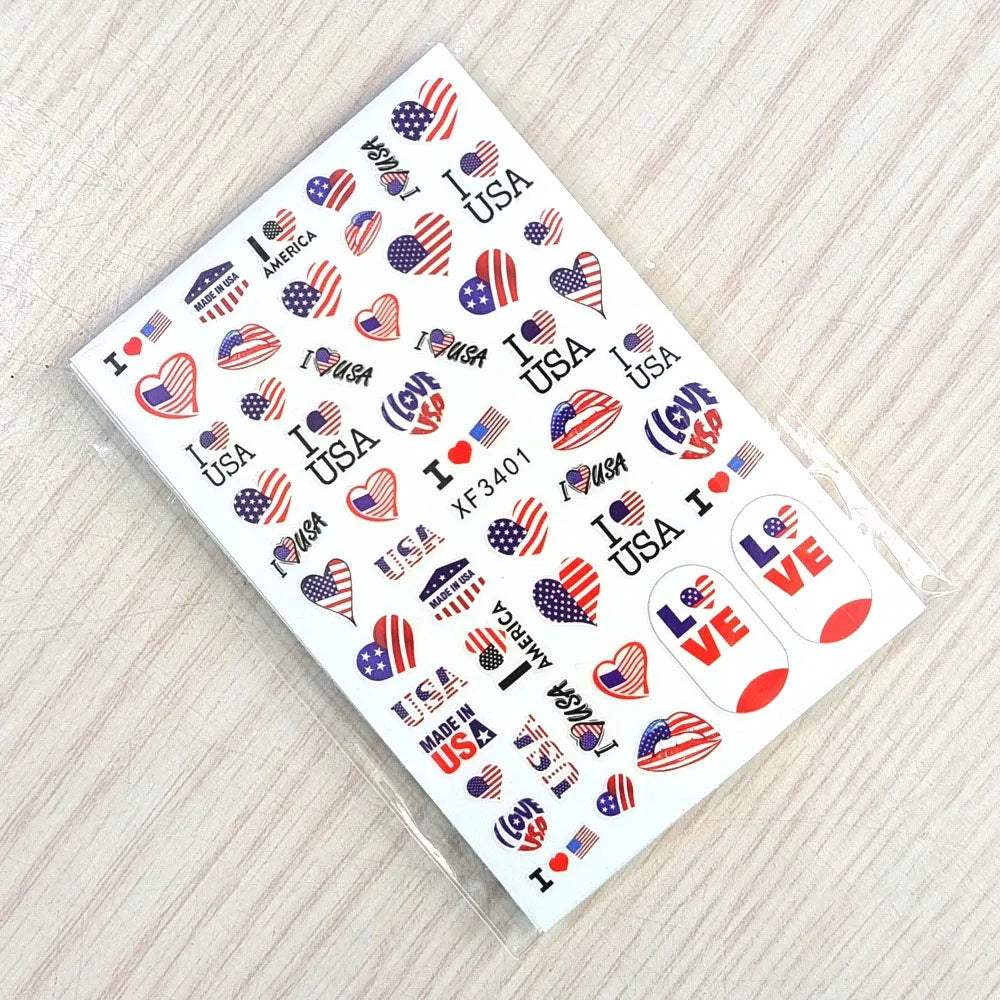 8pcs/Set July 4th Patriotic Nail Art Stickers 3D Stars,lips, Flame,butterfly,USA Flag Nail Decals DIY Independence Day Nail Decor