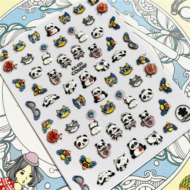 Star ladybug panda Hollow animal 5D Back glue Nail Art Stickers