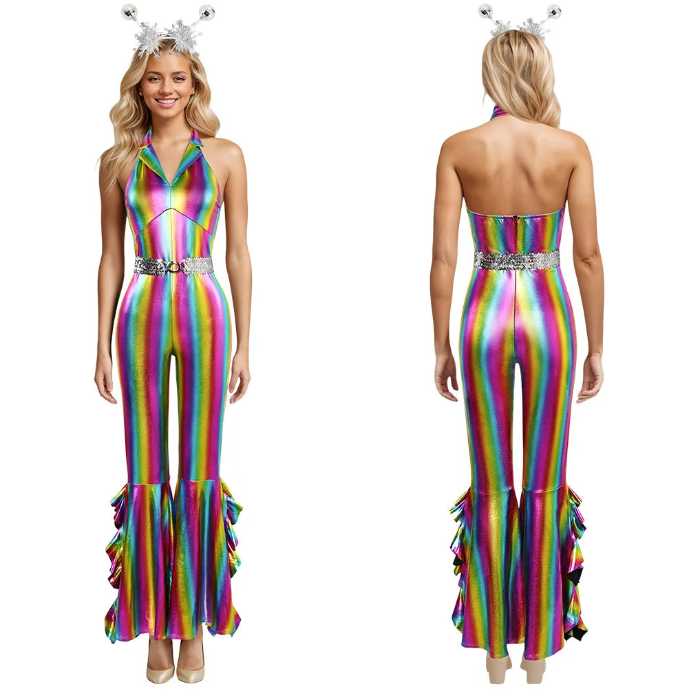 80s Disco Jumpsuit | Headband Dance Stage | Halloween Carnival Party Clothes