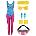 80s Jumpsuit Womens | Vintage Cosplay Tracksuit Yoga Costume Headband Leggings Fanny Pack Set Cloth Halloween Roleplay Suit