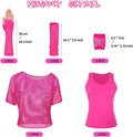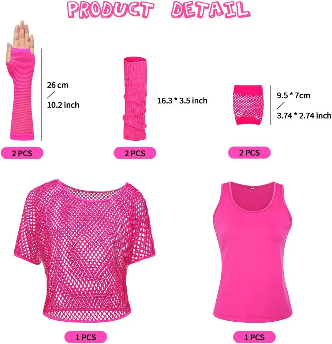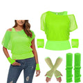 80s Outfit For Women 1980s Prom Costume Retro Women Neon Mesh T-Shirt Gloves Set Fancy 80s Party Dress Up Accessories