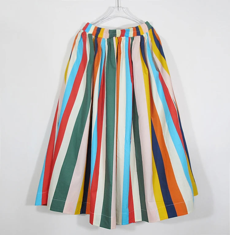 Aesthetic Korean Skirt Outfit | Korean Style Multicolor Striped Loose Fit Woman Casual Two Piece Set