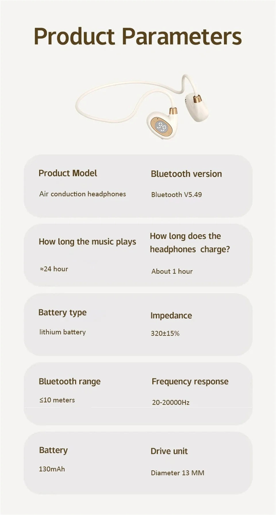 ♬ Painless wearing: The earphones are not designed to be in the ear, and the earphones are transmitted through the air, reducing the sense of ear vibration and allowing you to immerse yourself in the joy of exercise.