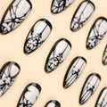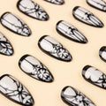 24 Pcs Gothic Fake almond Halloween Nails | Long Press On Nails White Glossy Stick On