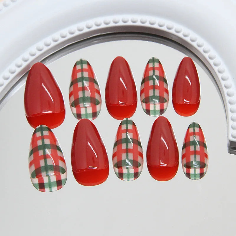 24 Almond Holiday Nails | Christmas Nail Short Almond Fake Nail Tips