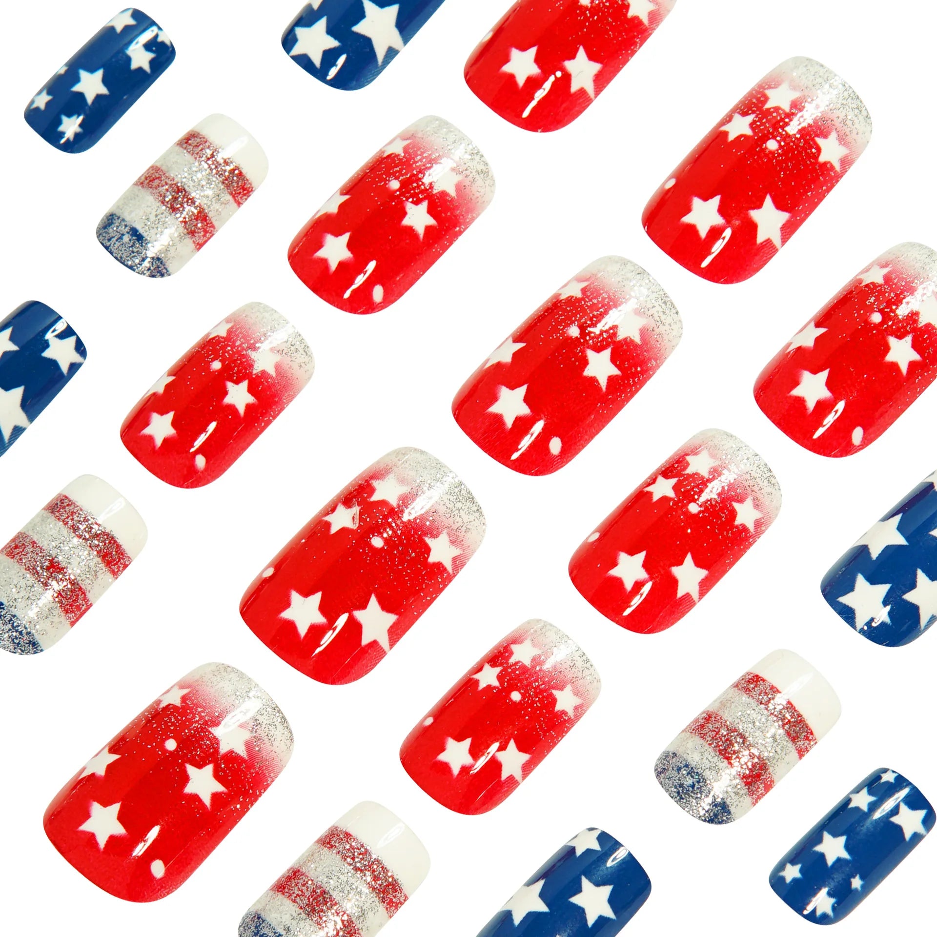 24PCS American Red Gradient with Blue Stripes Design for Patriotic Style