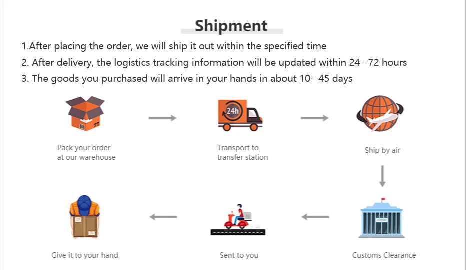 Customized products require a production cycle of 7-14 days. If you want to get the product faster, please choose a faster logistics method.
