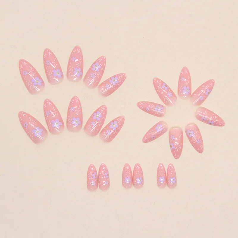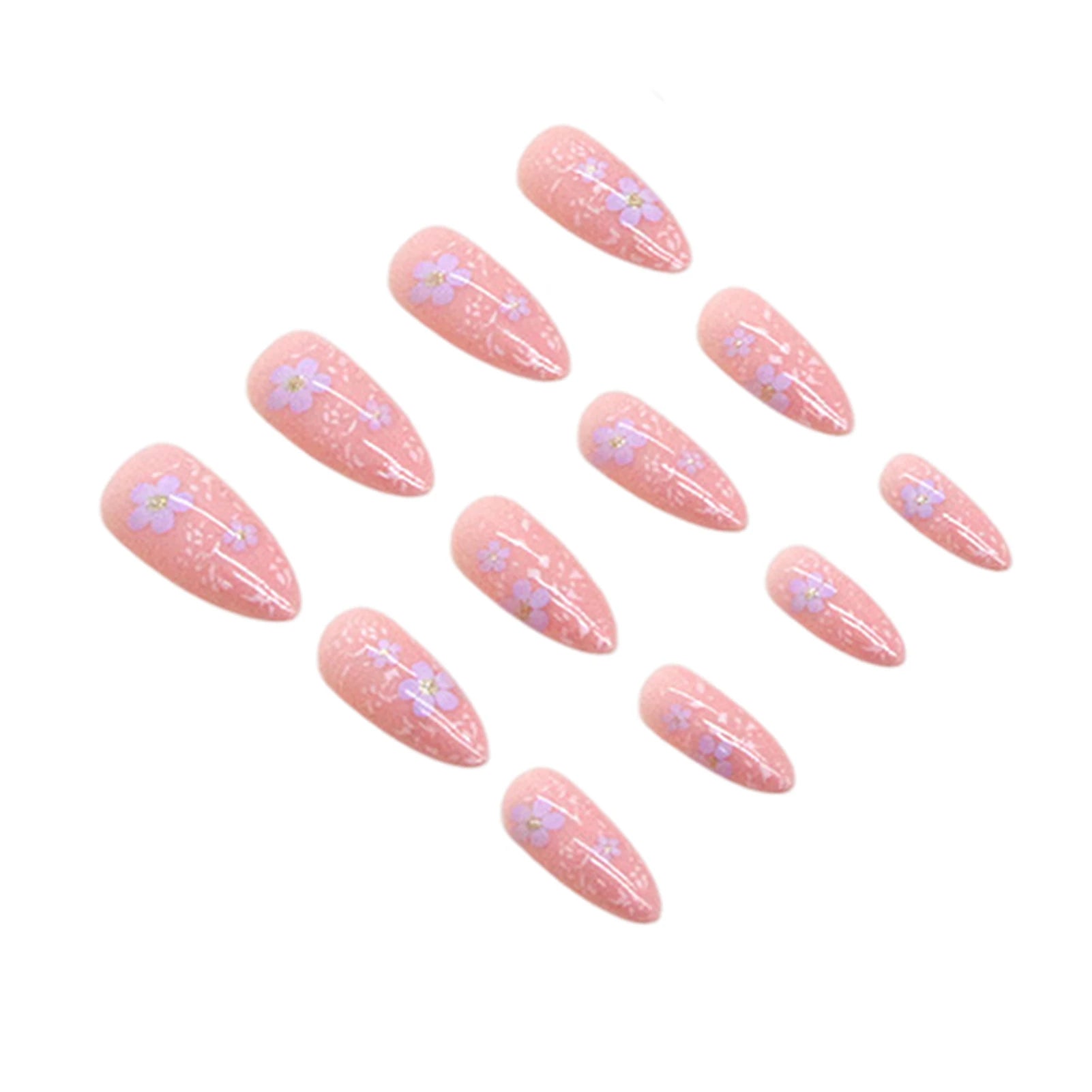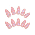 24 August Nails Ideas Almond | Gold Foil Decor Pink Almond False Nails | Easy to Apply