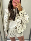 Autumn Clothes For Ladies | Polka Dot Sets For Women | Stand Collar Drawstring Jacket High Waist Shorts