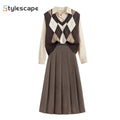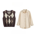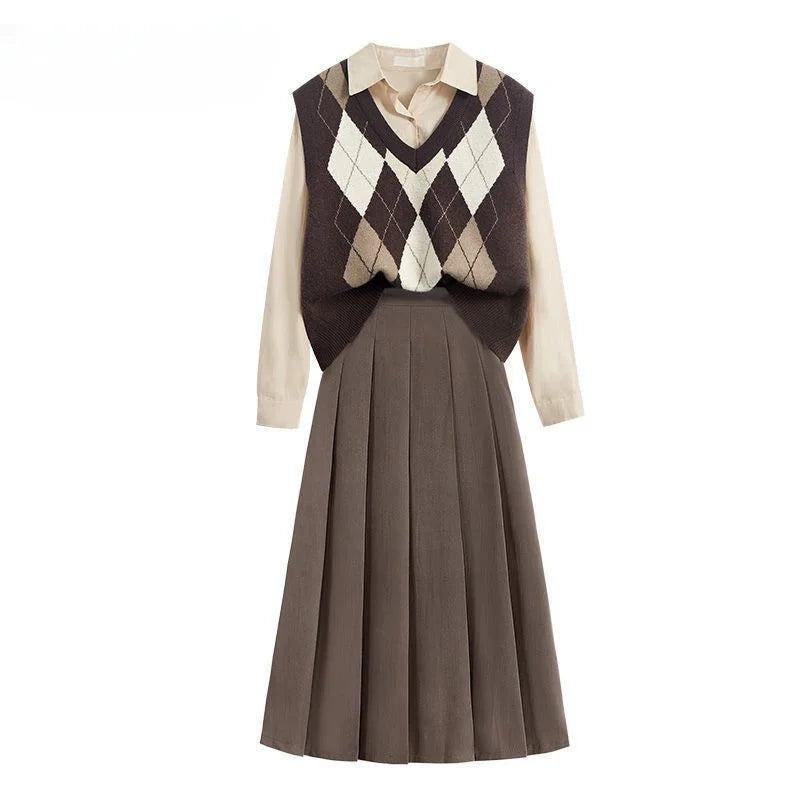 Autumn Fits | Large Size Knitted Vest Shirt Layered Three Piece Set for Women