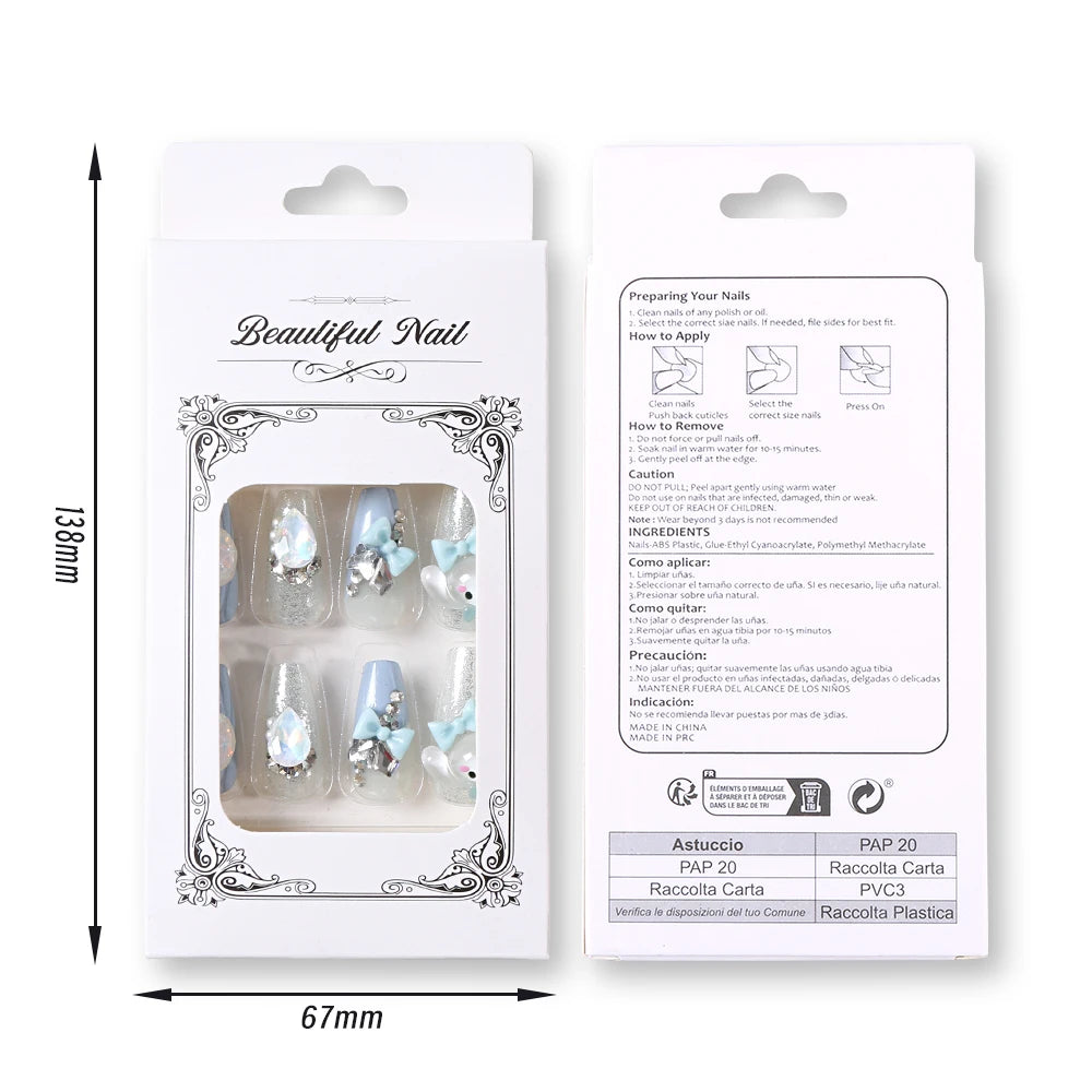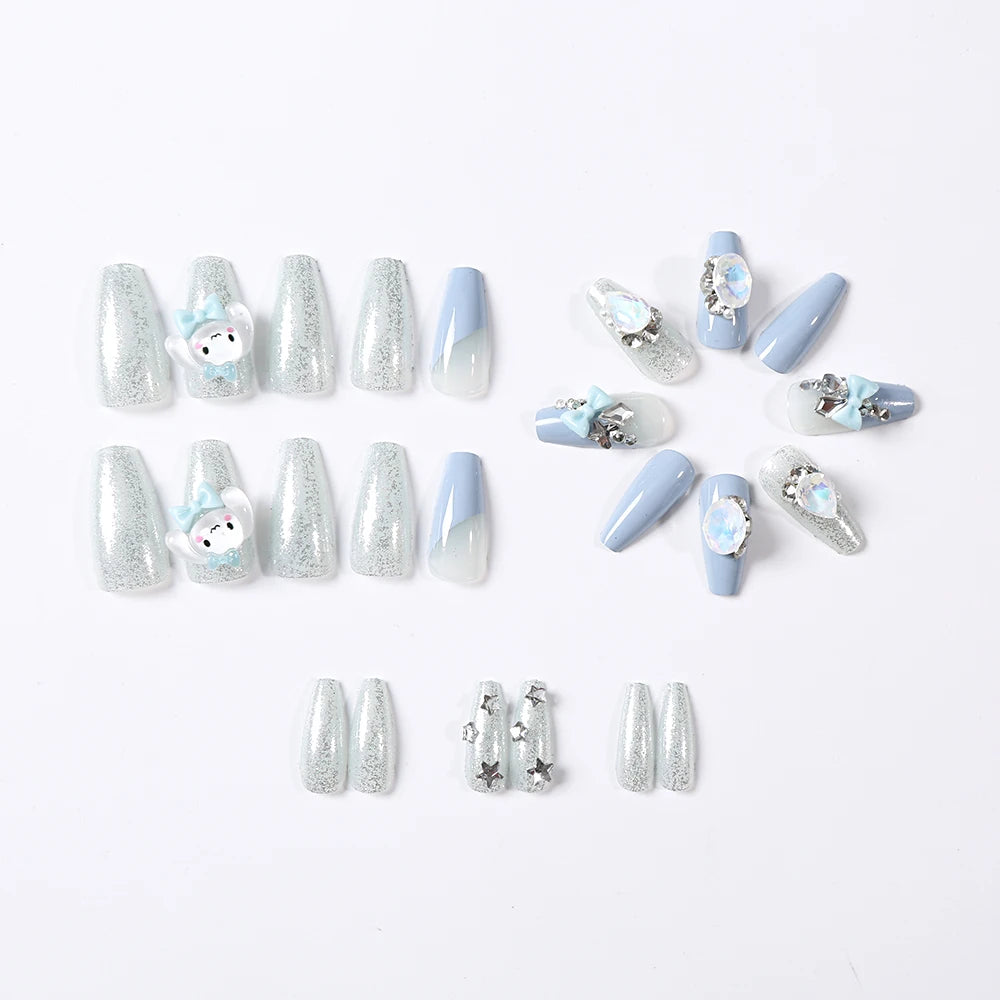 24Pcs Sanrio Blue Cinnamoroll Fake Nails Cute Anime Cartoon Kuromi My Melody press on False nails Fashion Nail Patches for Girls
