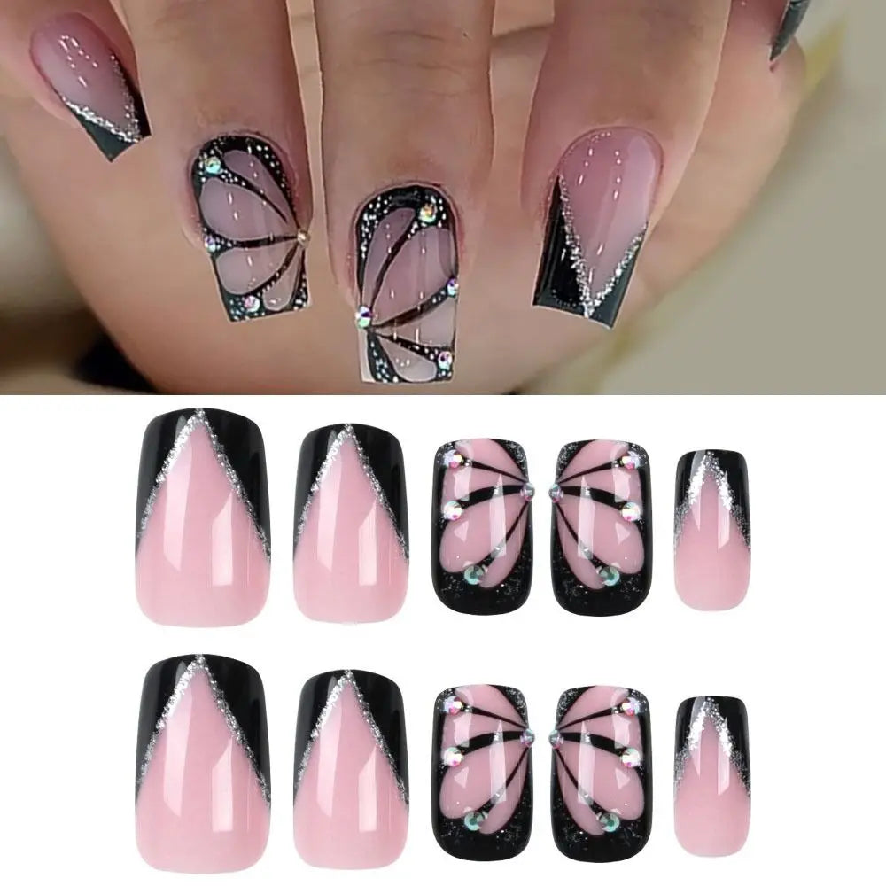 24 Back To School Nails 9th Grade | Black Butterfly Wings Fake Nails | Full Cover Press on Nails