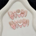 10 pcs Back To School Nails For 8th Graders | Cat Eye Pink Bow Decor Korean False Nails