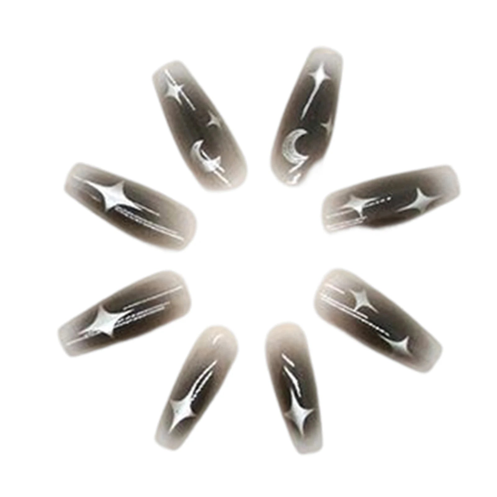 Easy to Wear: Firstly, clean your nail surface, then match the size of the false nail with your nail. After that, stick glue or adhesive tabs of the appropriate size on the back of the fake nail, then press it against the nail for about 20 seconds, and finally correct the false nail with a nail file according to your preference.