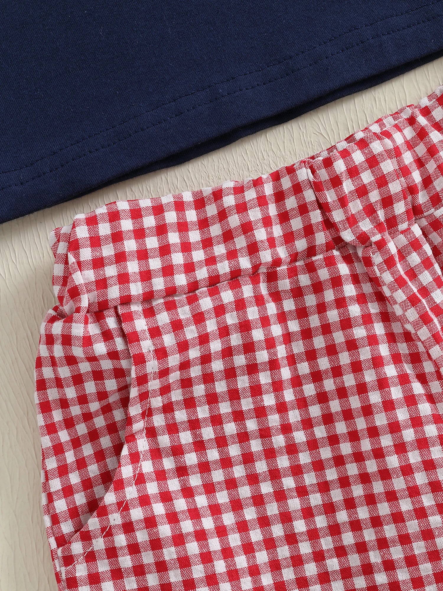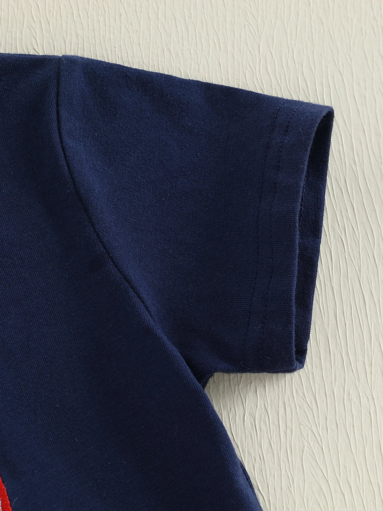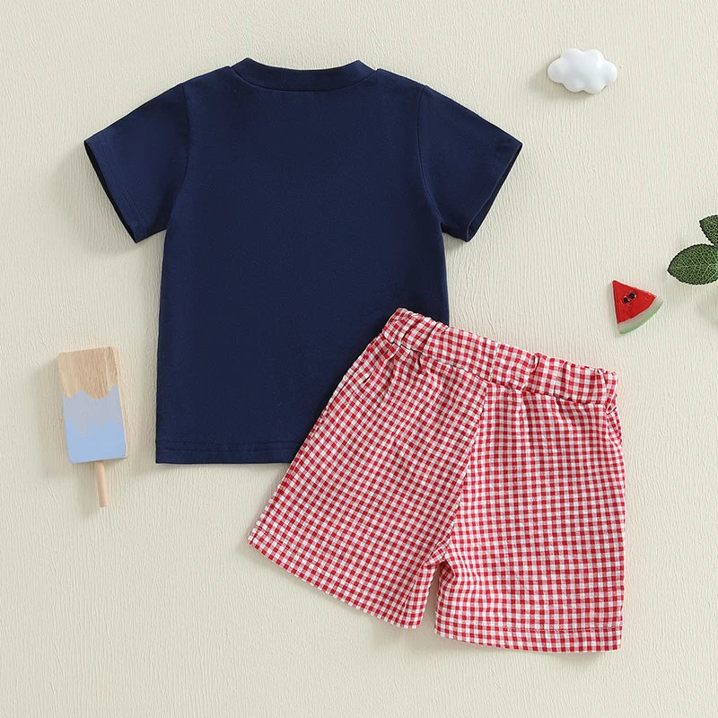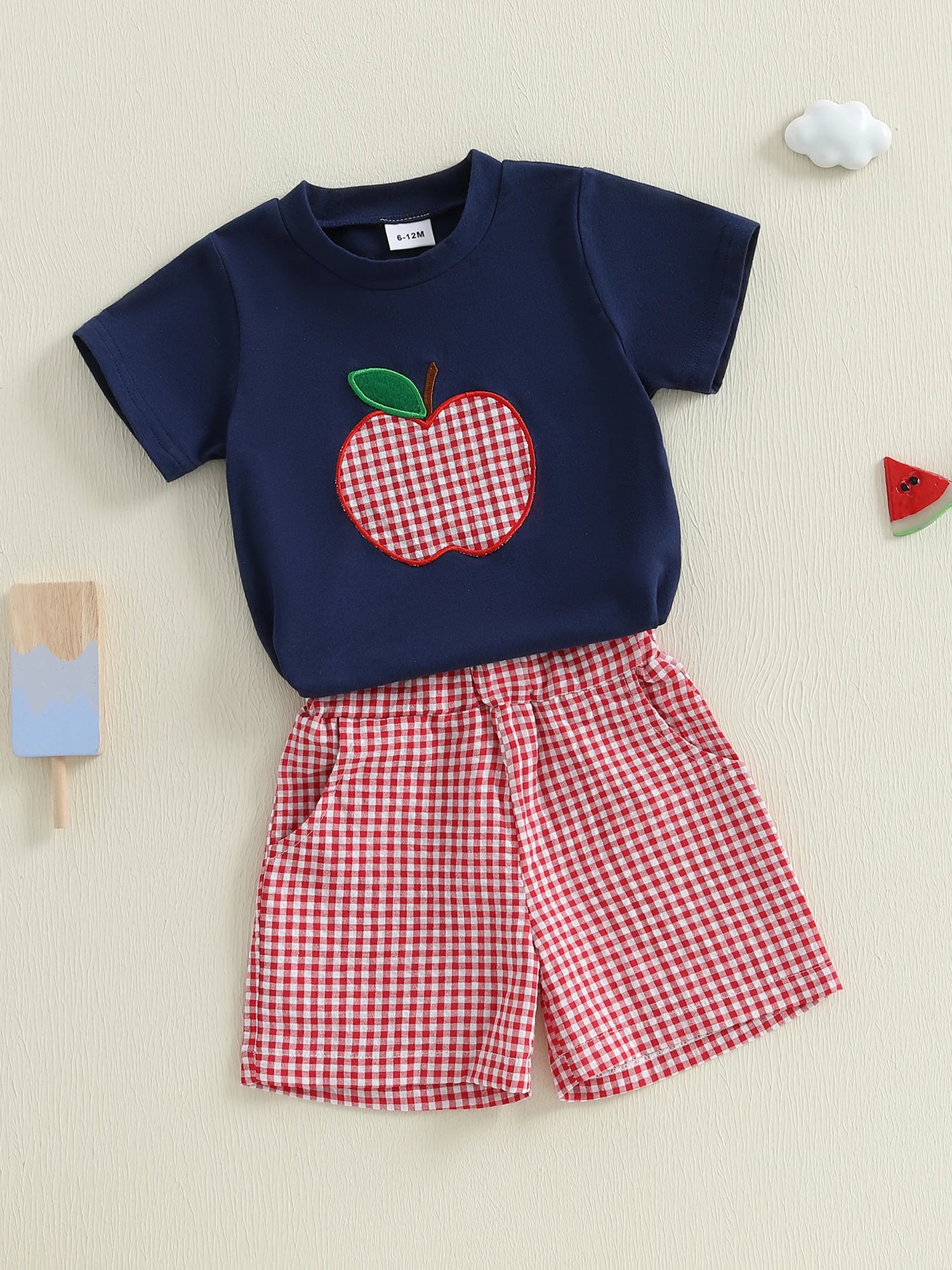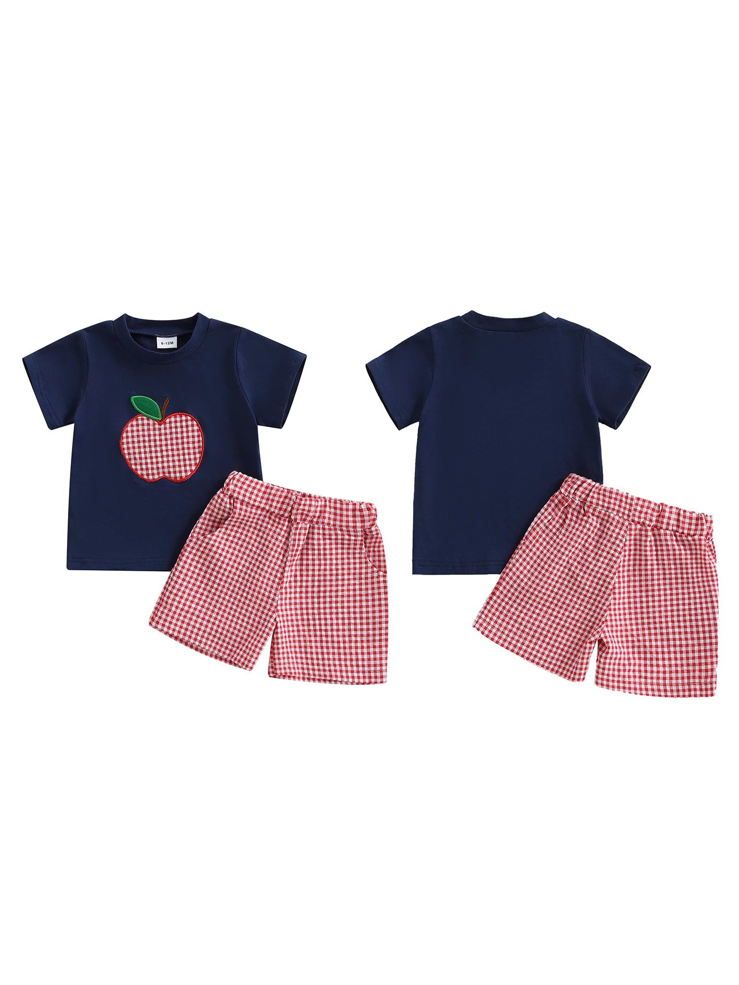 Baby Boy Back to School Outfits Short Sleeve Apple Embroidery T-Shirt Shorts Set