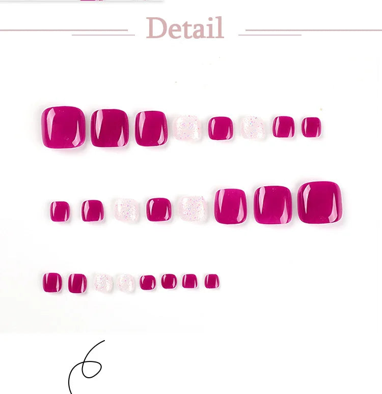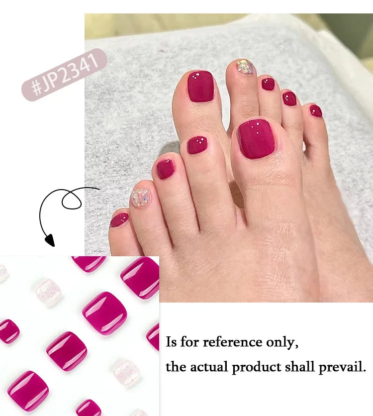 24 Beach Toe Colors | Summer Beach Rose Red Artificial Glitter Powder Toe False Nail