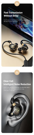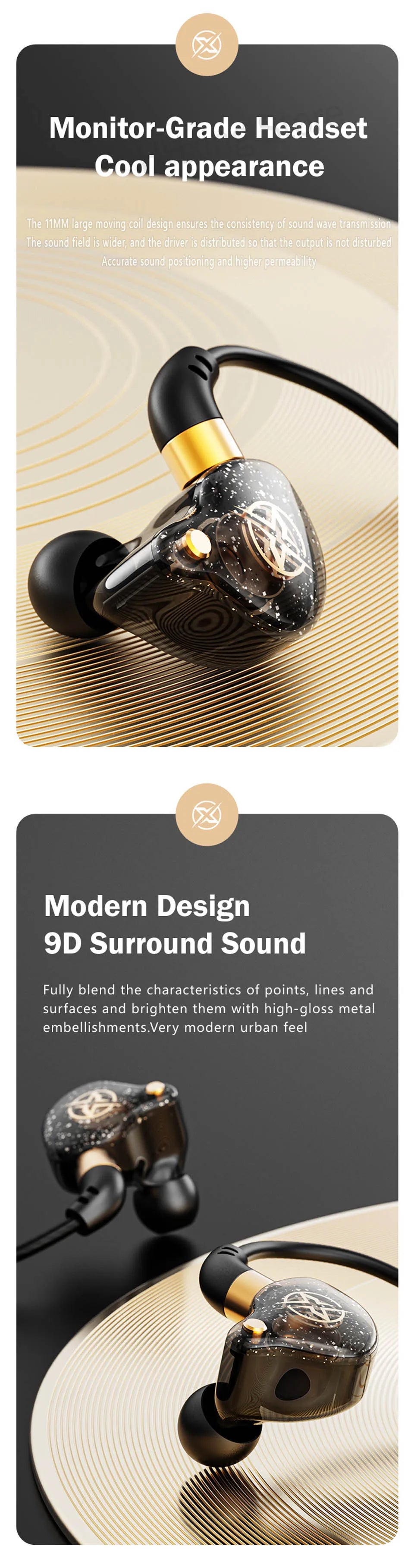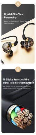 ♪ Golden hybrid dynamic noise reduction headphones, deep bass, clear sound, clear treble, really heavy bass.