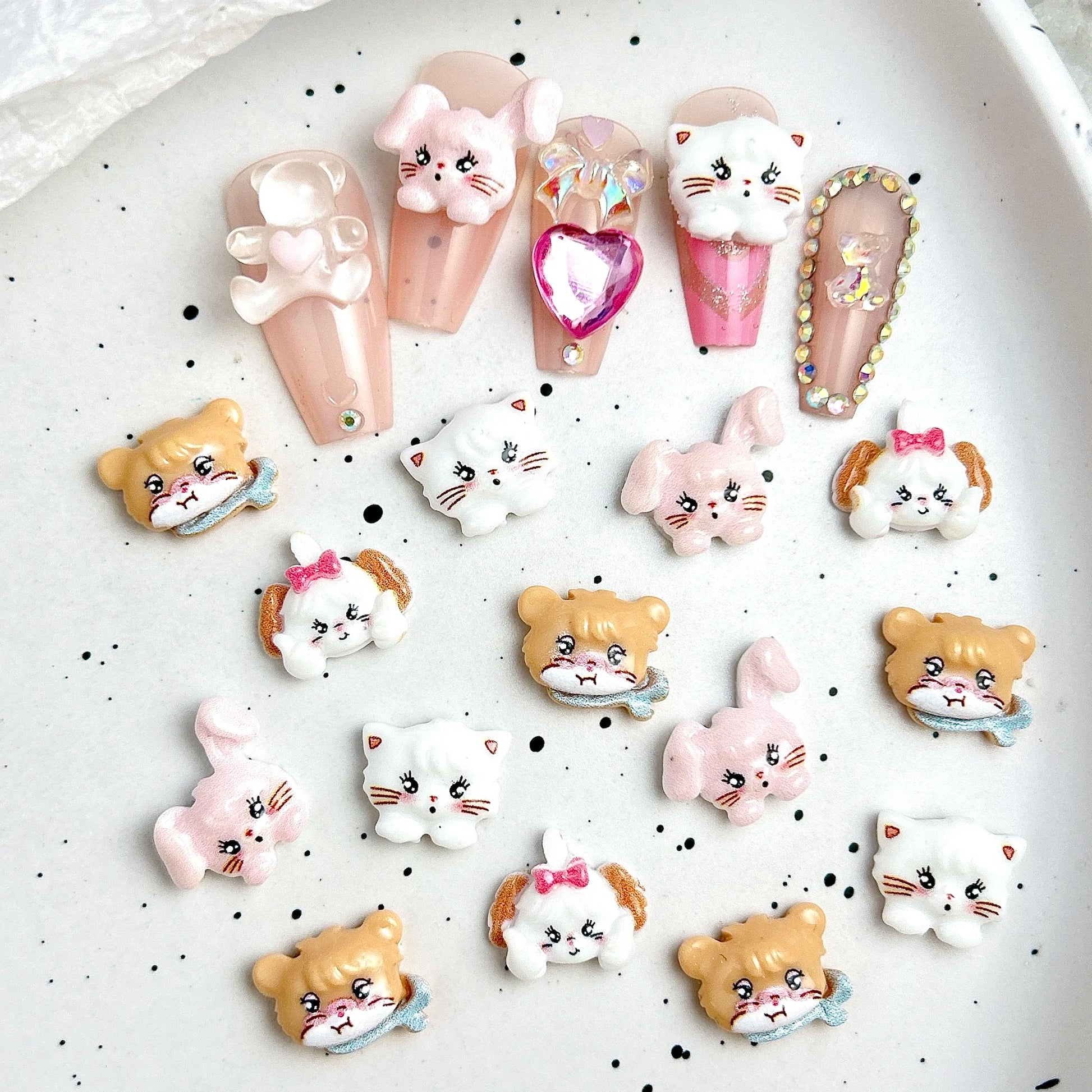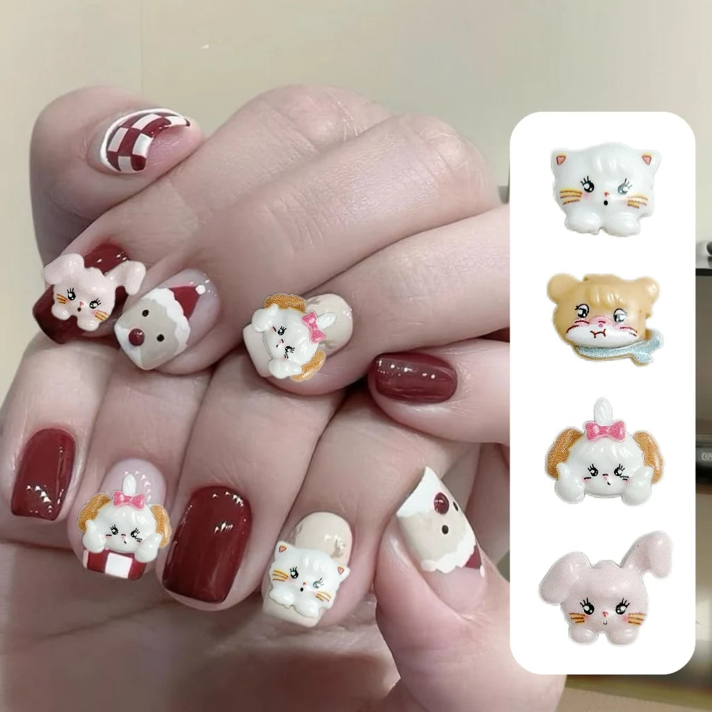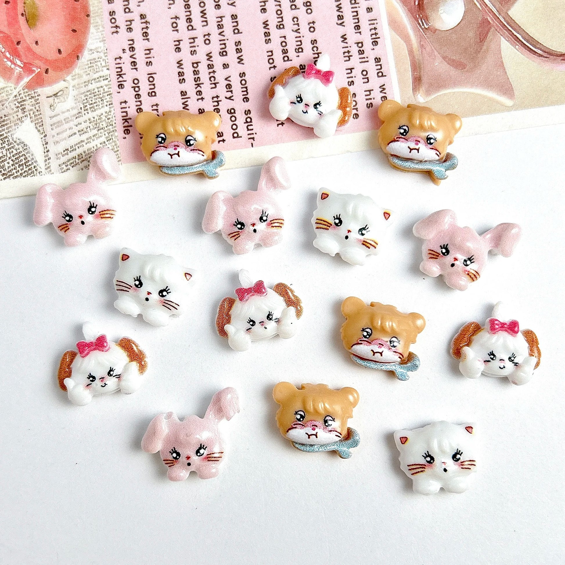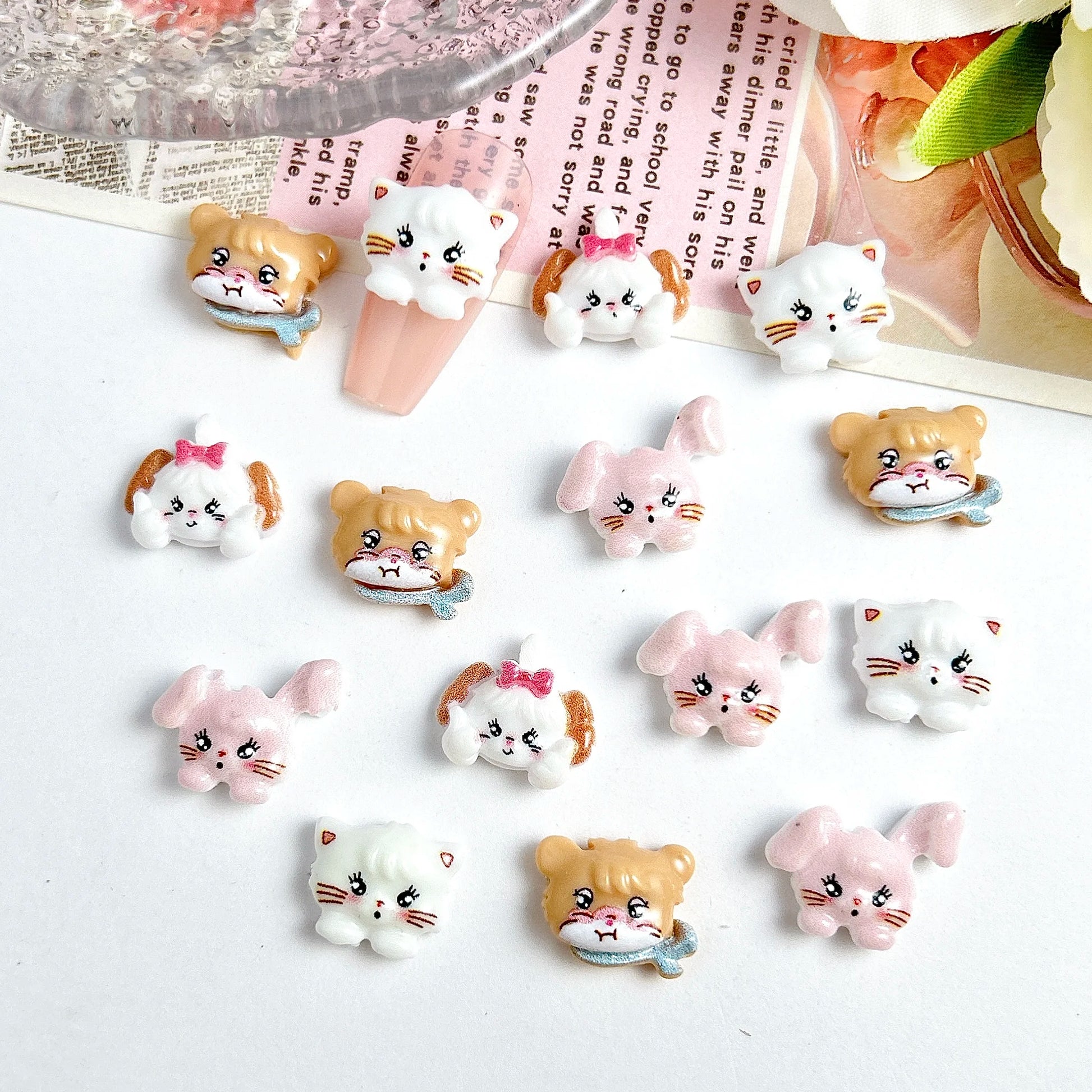 30PCS Kawaii Cartoon Cat Resin Nail Charms Adorable Luminous Colorful Rabbit Nail Art Accessories for DIY Hairpin Nails Crafts