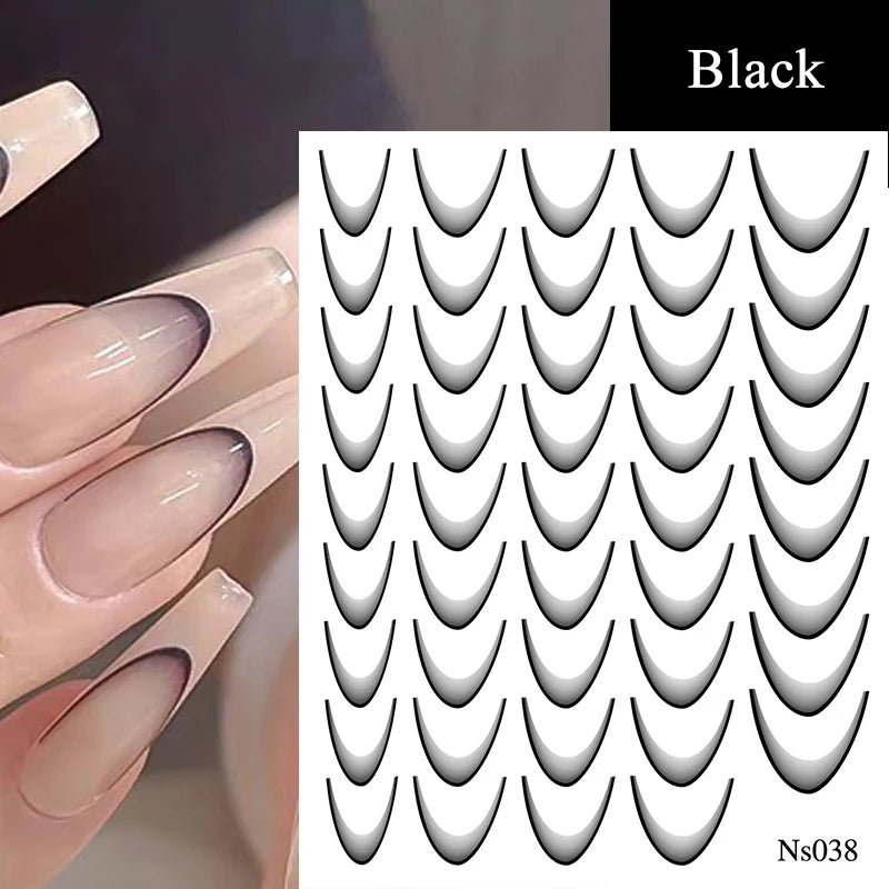 1PC 3D Black French Tip Nails | Nail Art Decorations Stars Decals Manicure Accessories