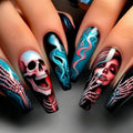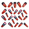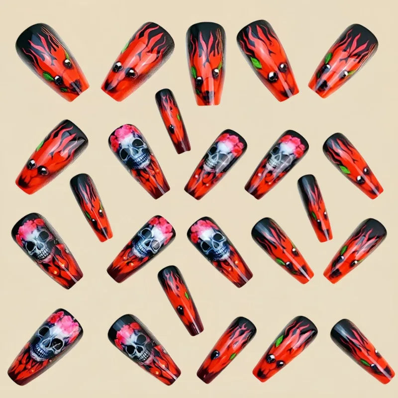 24 Blood Red Halloween Nails with Glue Horror Skull Flower Pattern | Halloween Nail Art