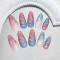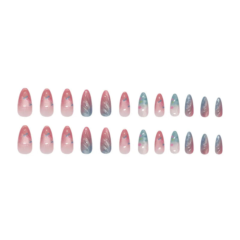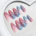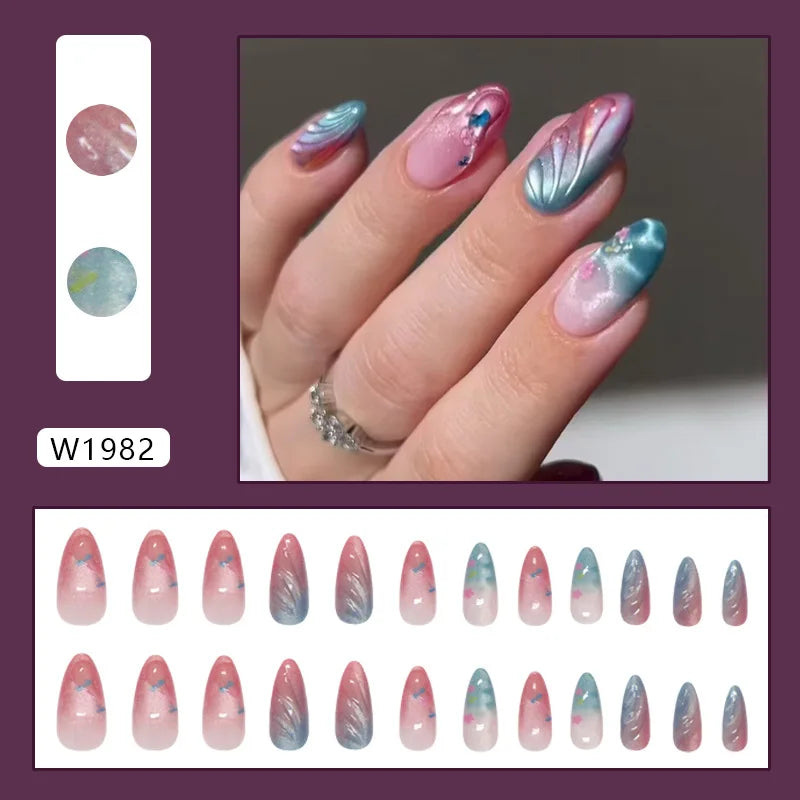 24 Blue Cat Eye Nails Set with Tools Medium Short Realistic False Nails