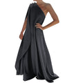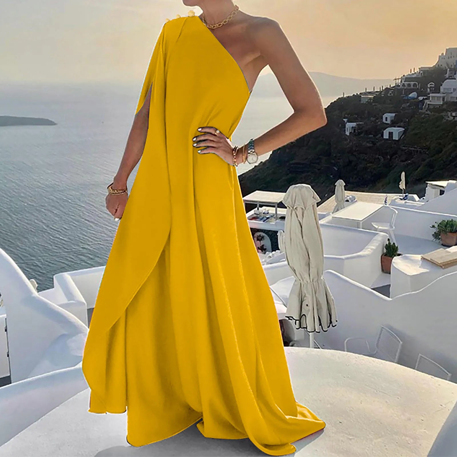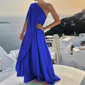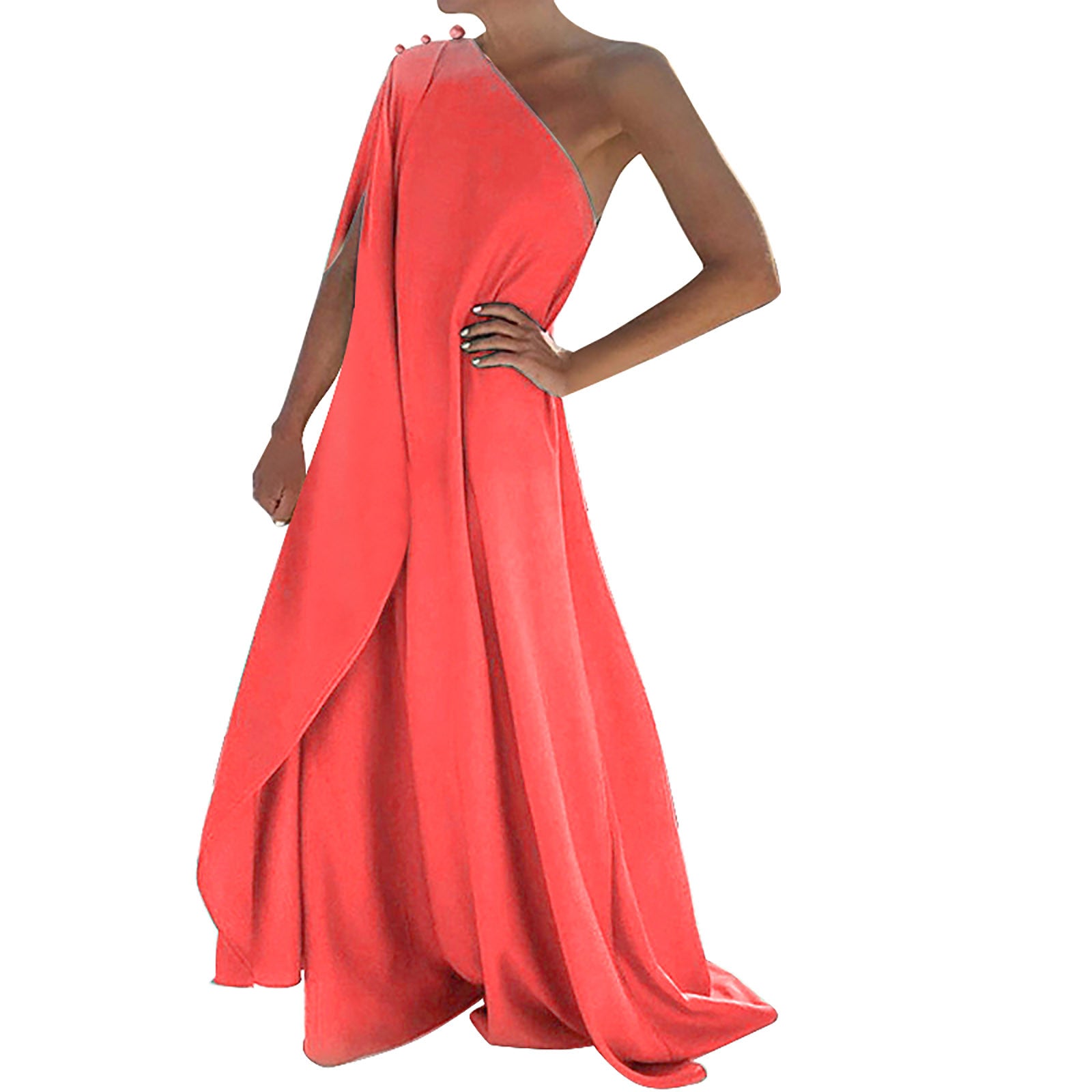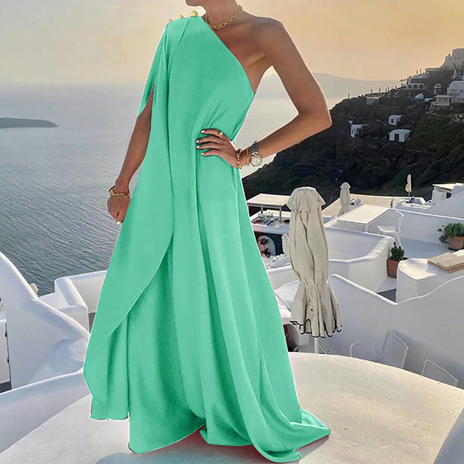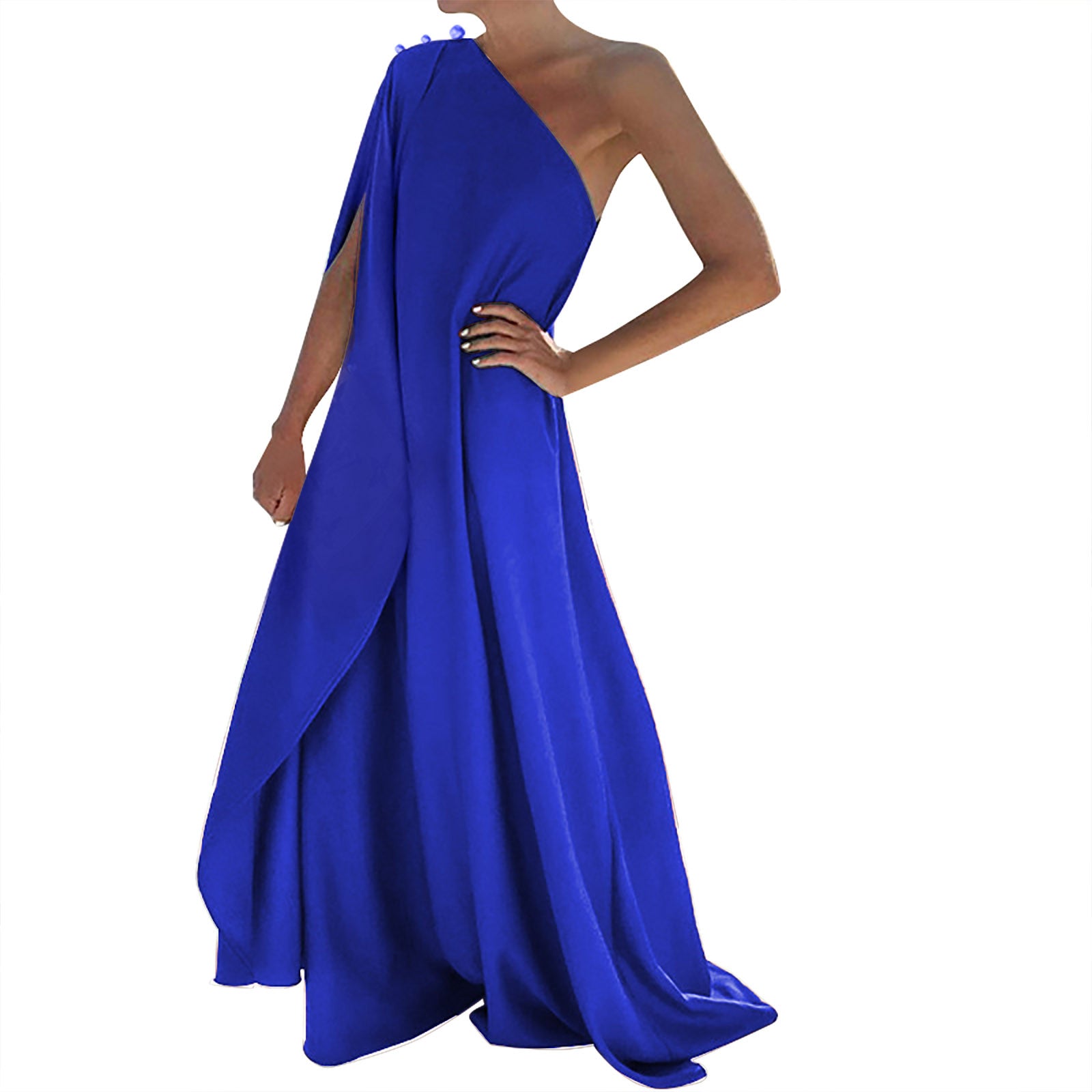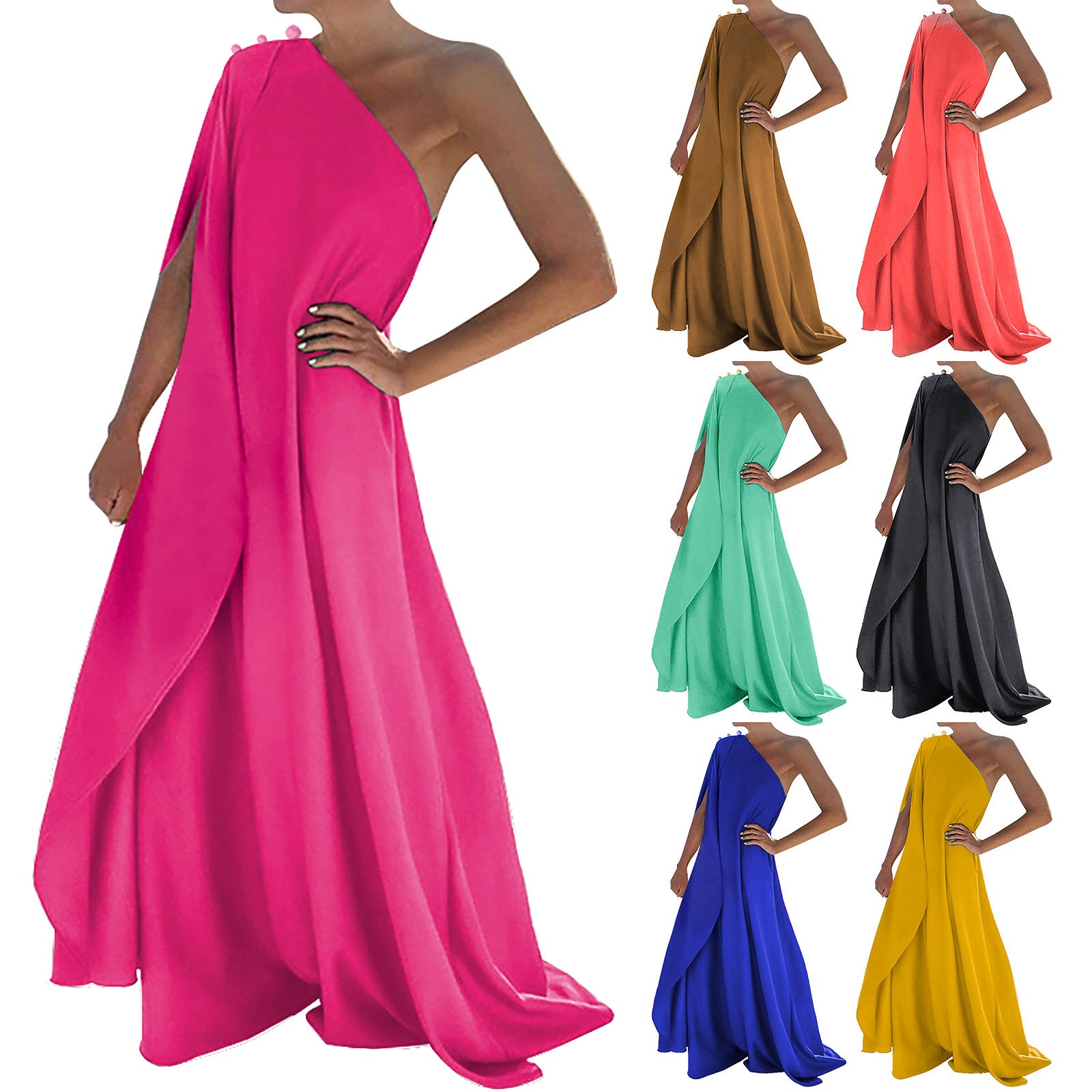 Women Casual Boho Solid Colorone Shoulder Long Dress Holiday Dress