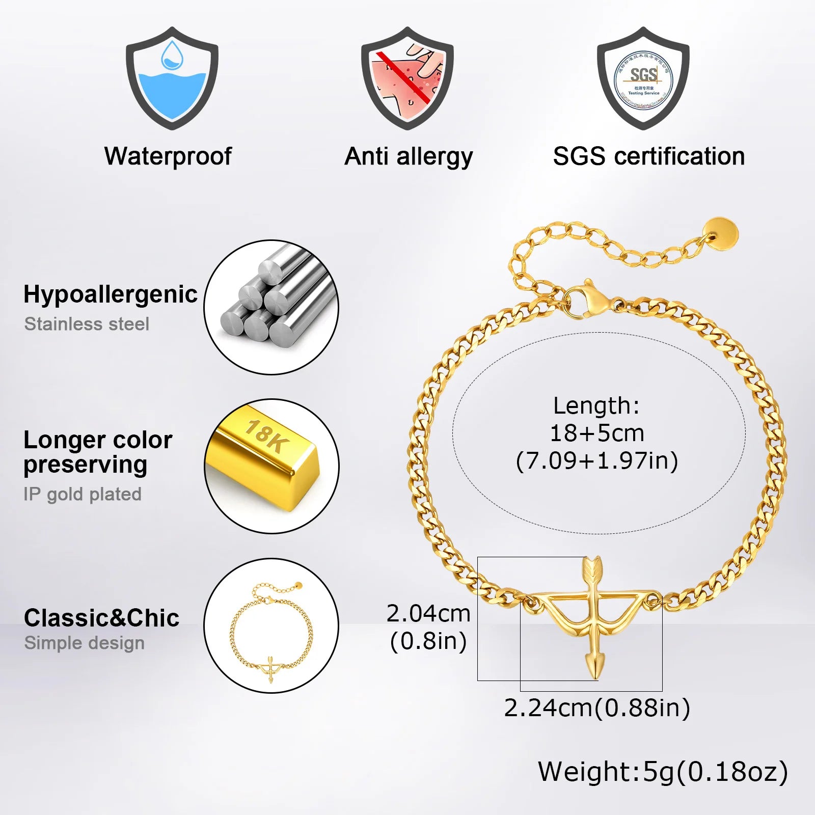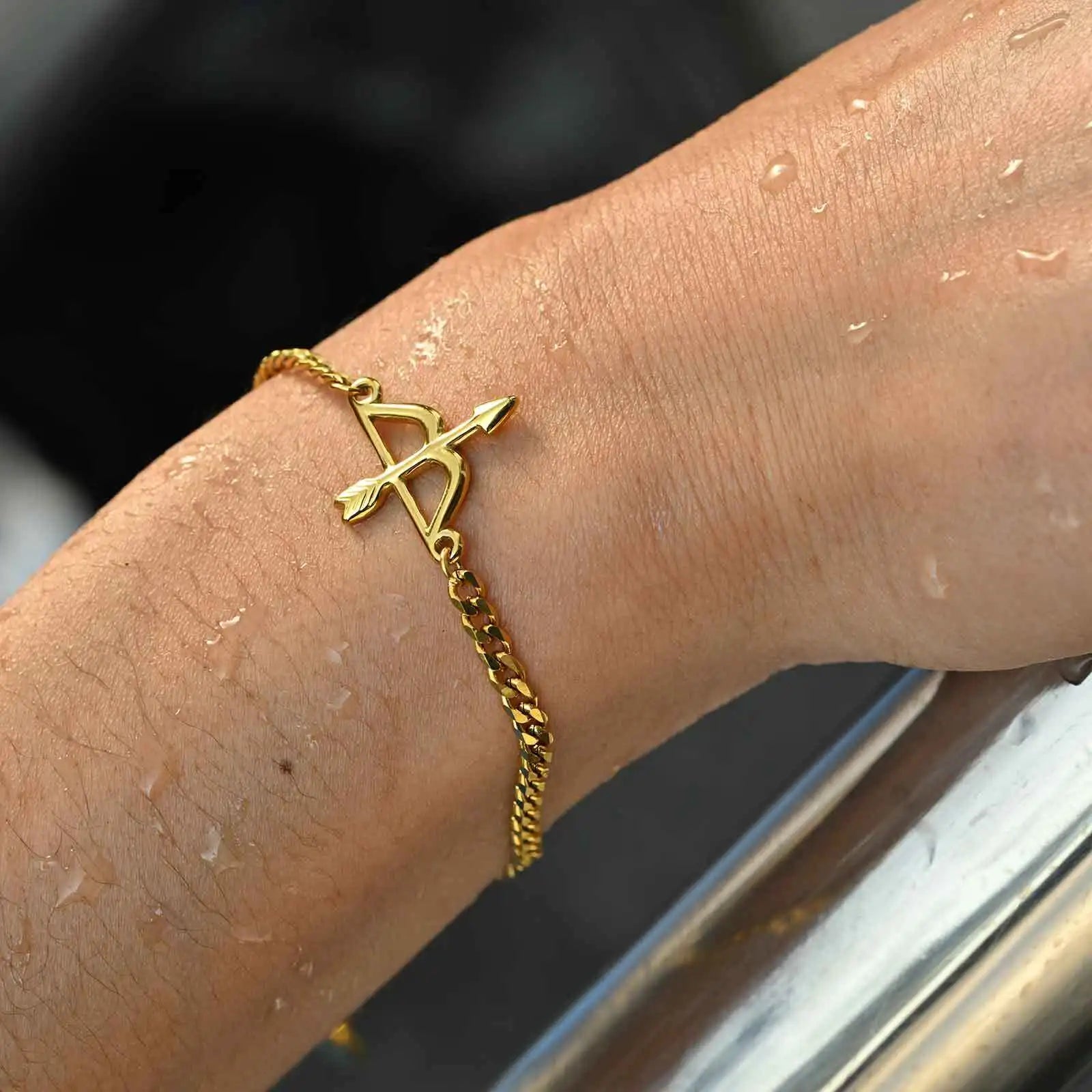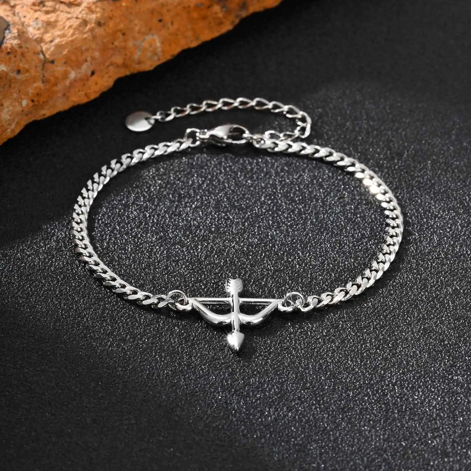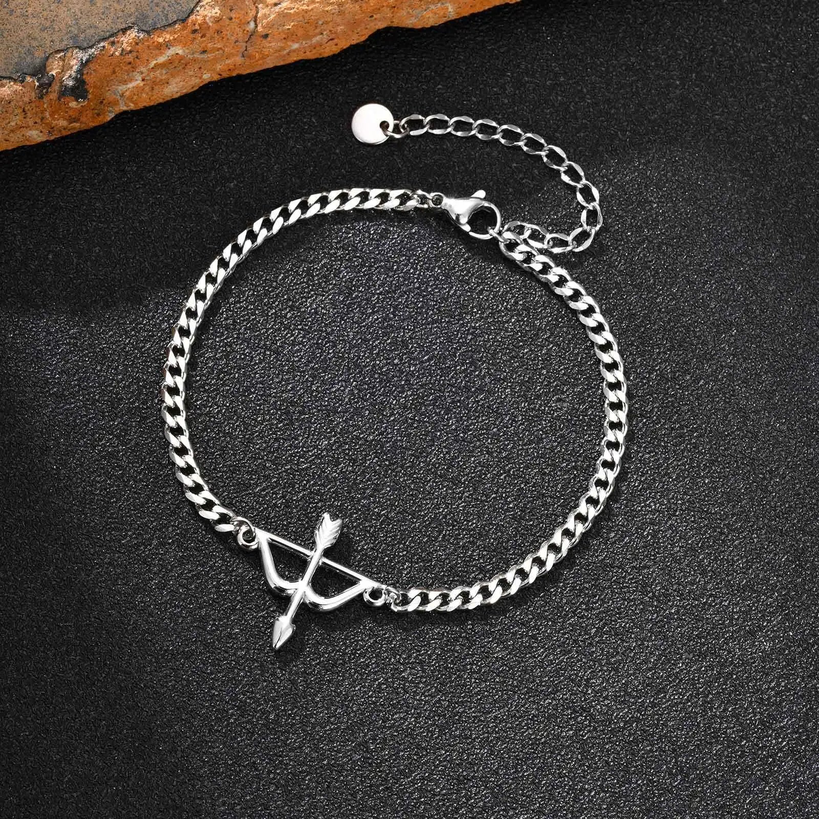 Bow and Arrow Bracelet for Men | Stainless Steel Miami Curb Chain Wristband