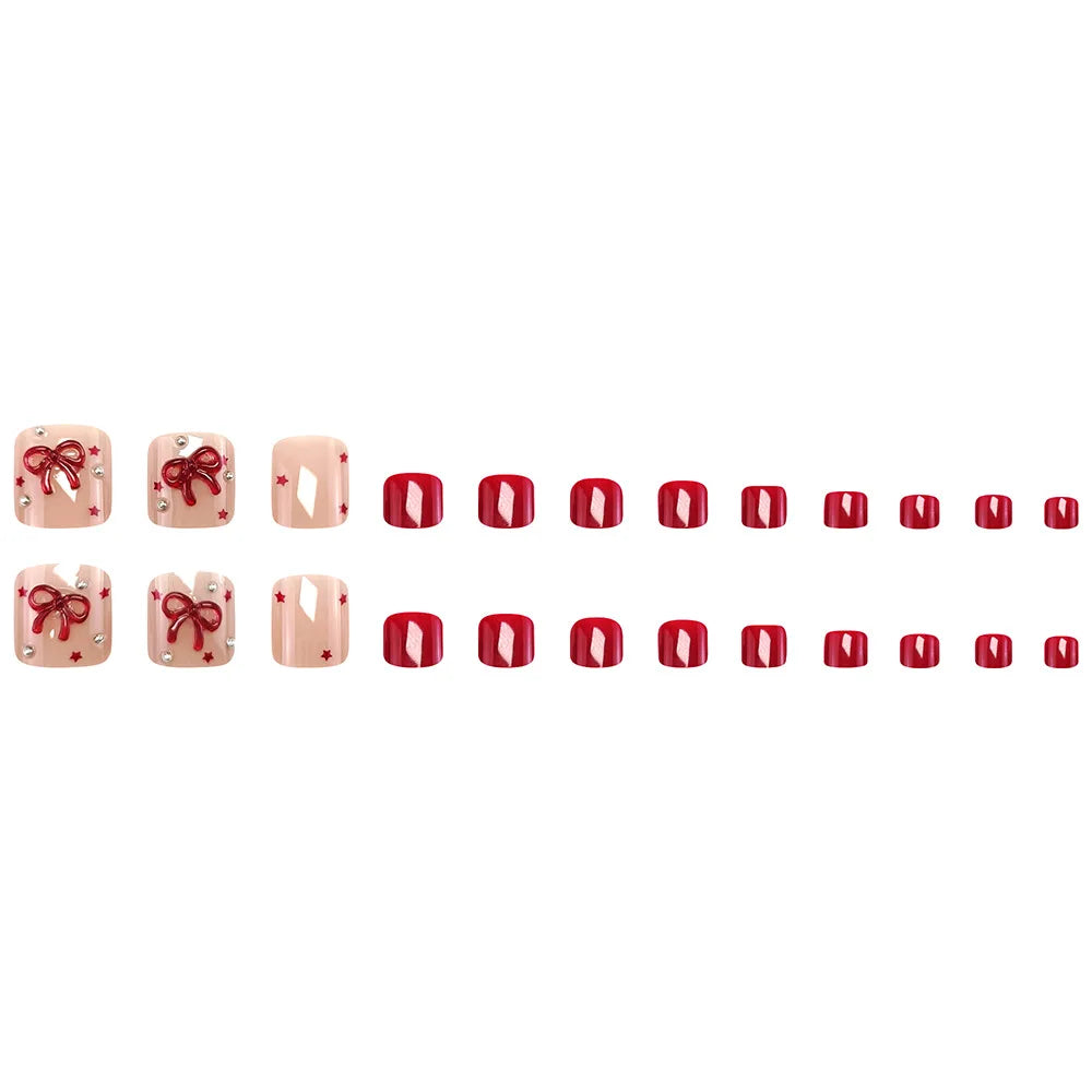 24 Bow Design On Toenails | Five-pointed Star Diamond Decor False Toenail