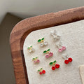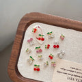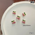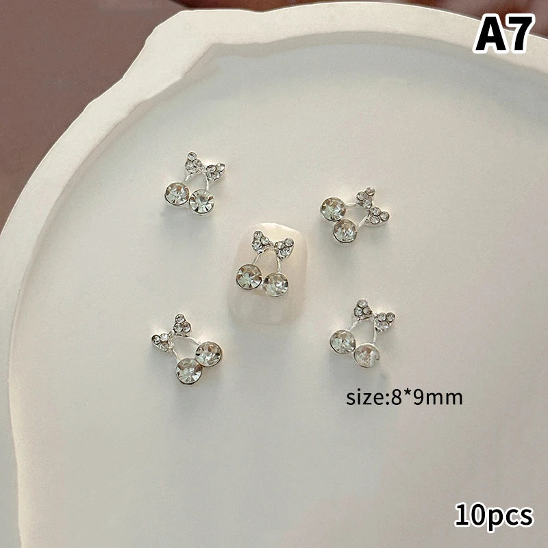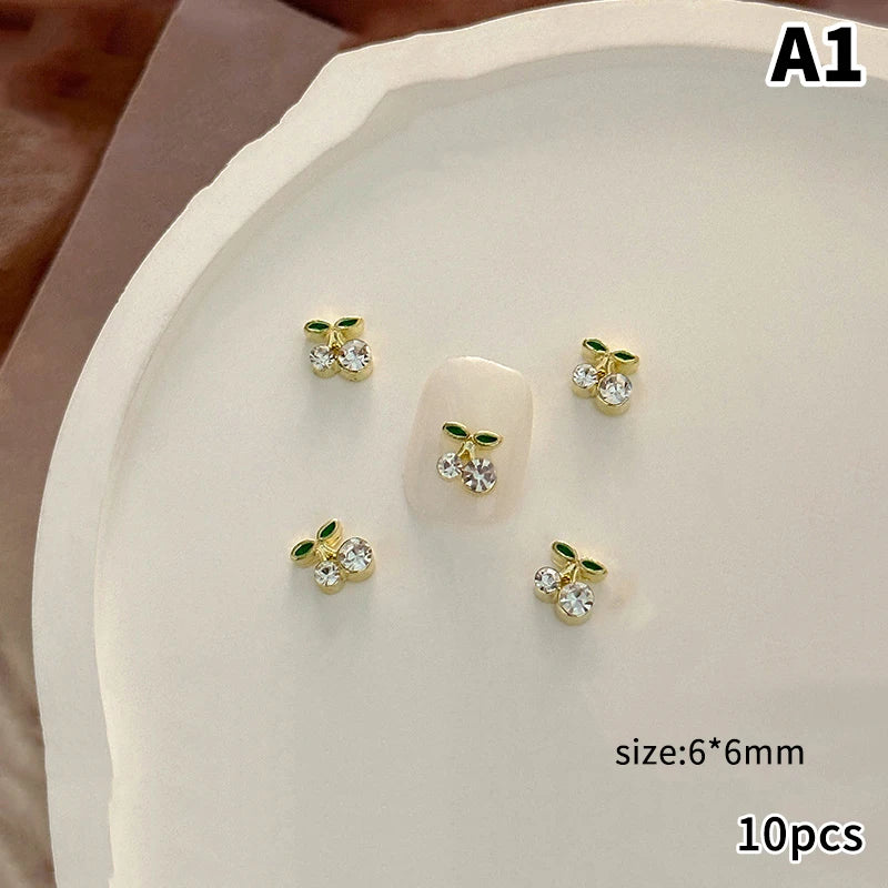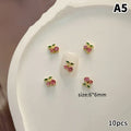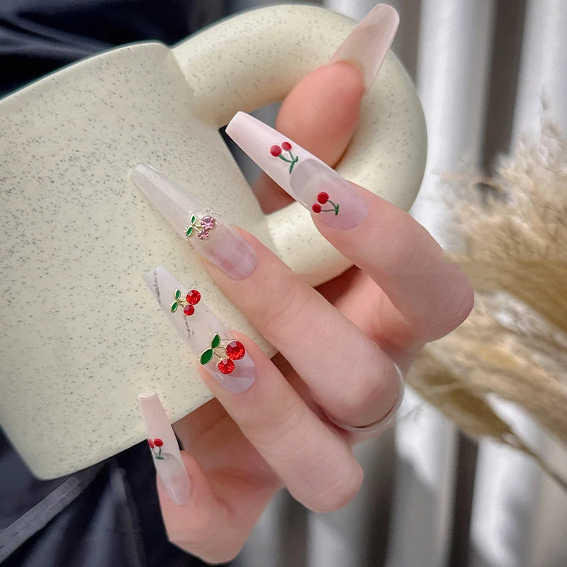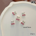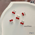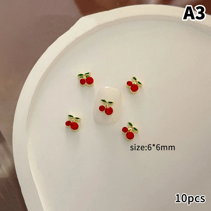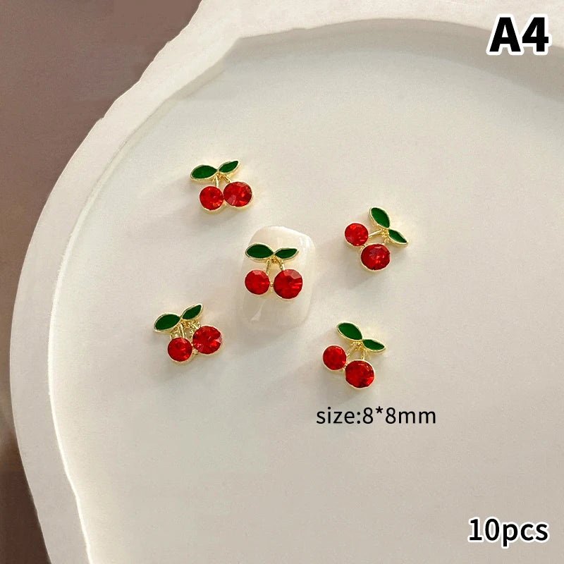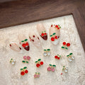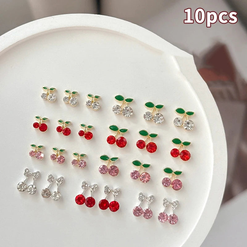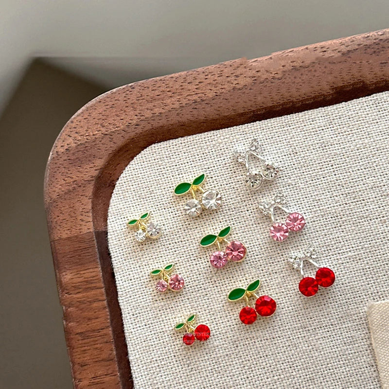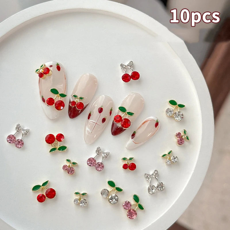 10 Pcs bright cherry red nails | 3D Cherry Charm Red Crystal Jewelry