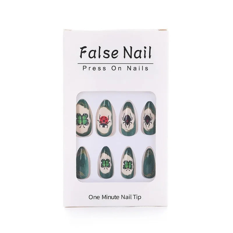 Green Forest Insect Style Wearable Nail Tips | Butterfly And Ladybug Nails | False Nail Stick on Natural Wear