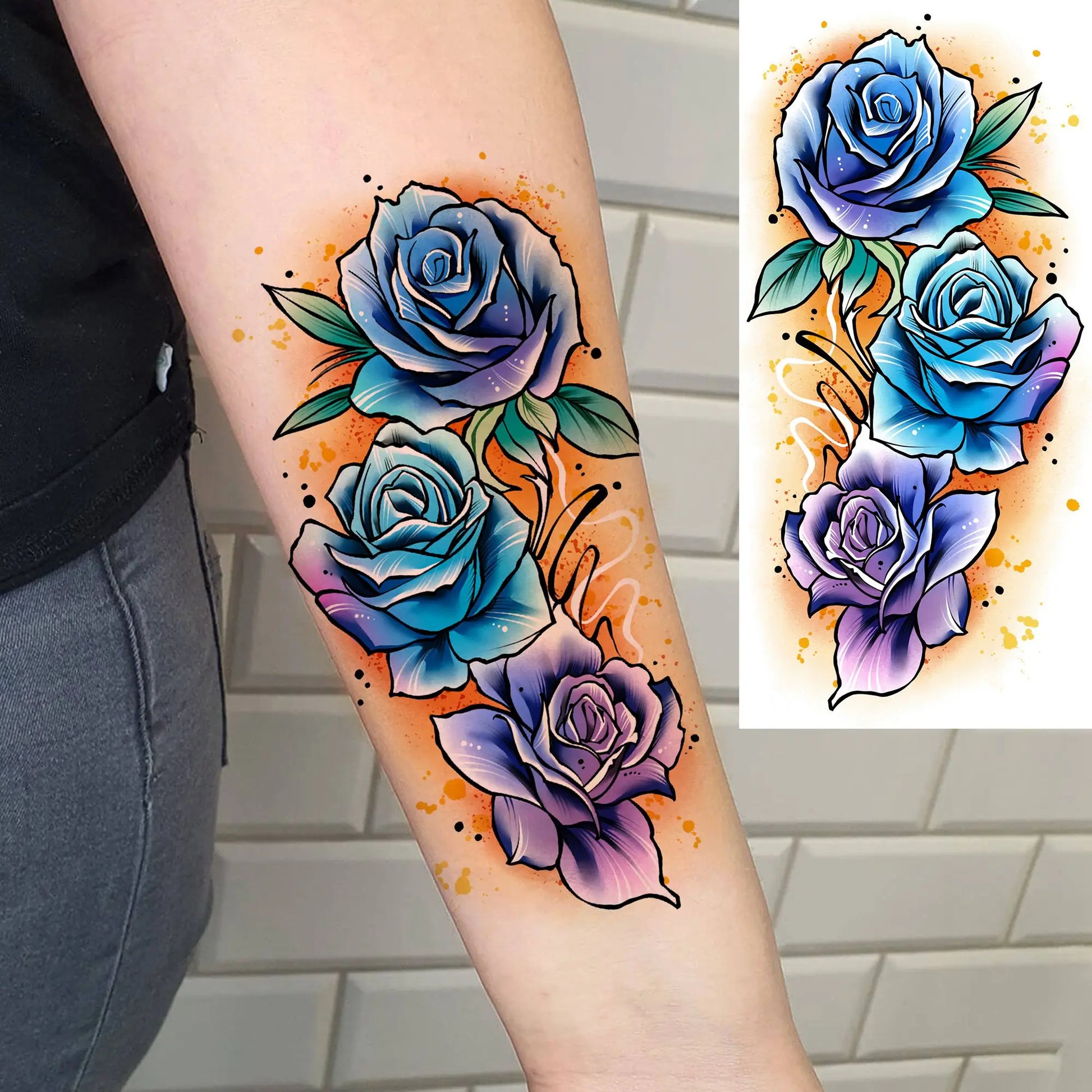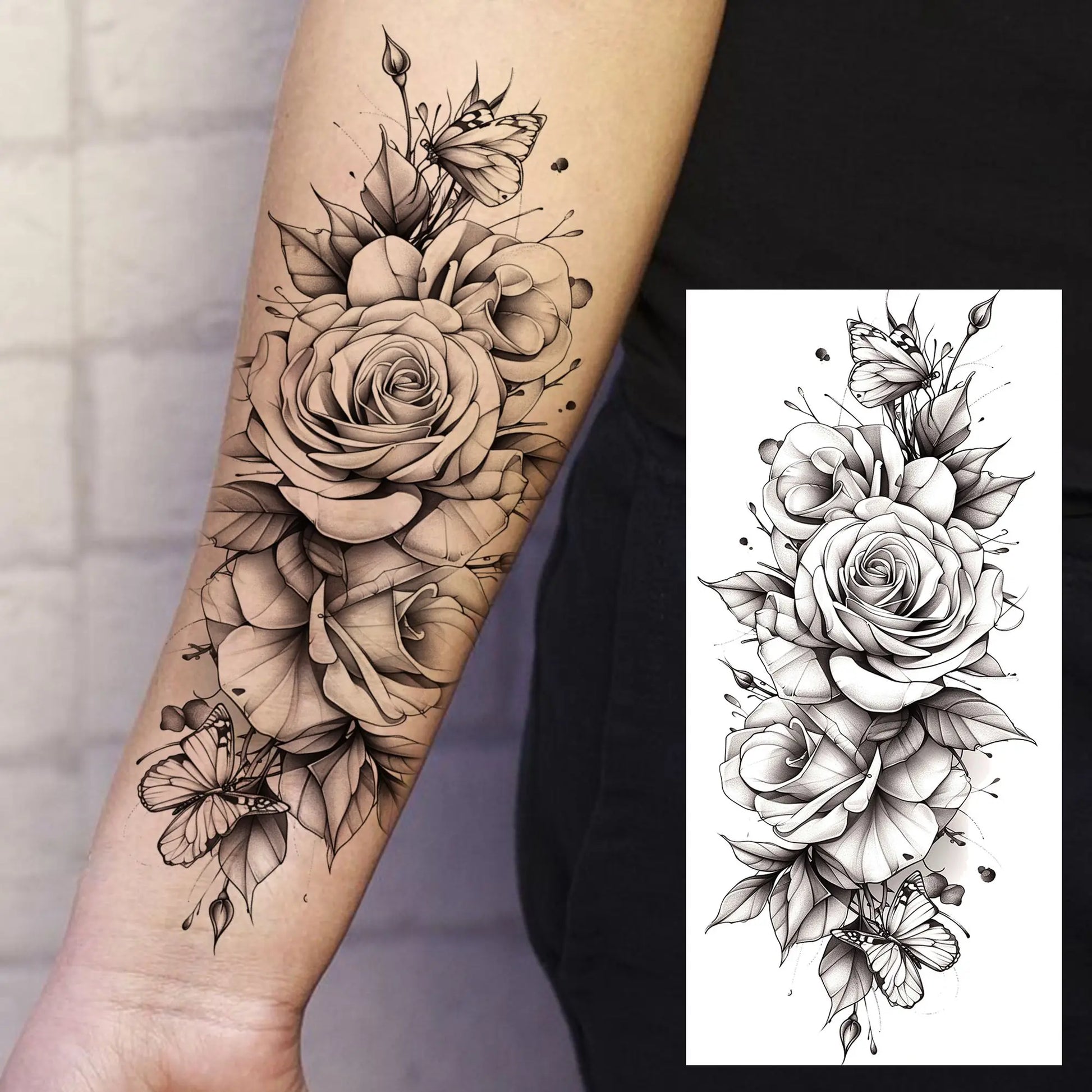 1 Sheet Beautiful Watercolor Flowers Butterfly Temporary Tattoos For Women Waterproof Realistic Fake Tattoo Sticker Long Lasting