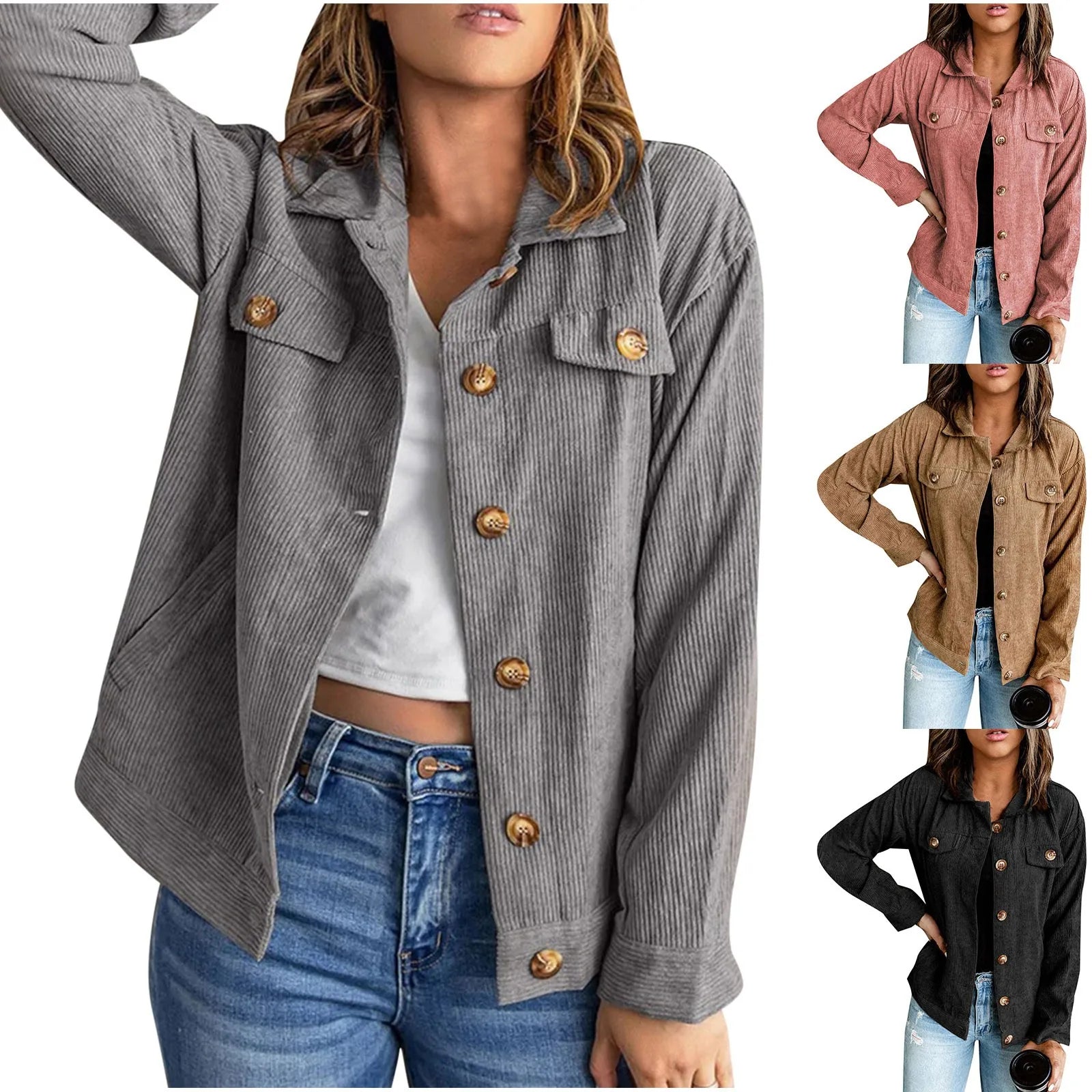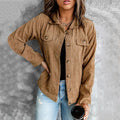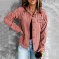 Fashion Women Corduroy Jacket Turn Down Collar Long Sleeve Pockets Button Up Coat